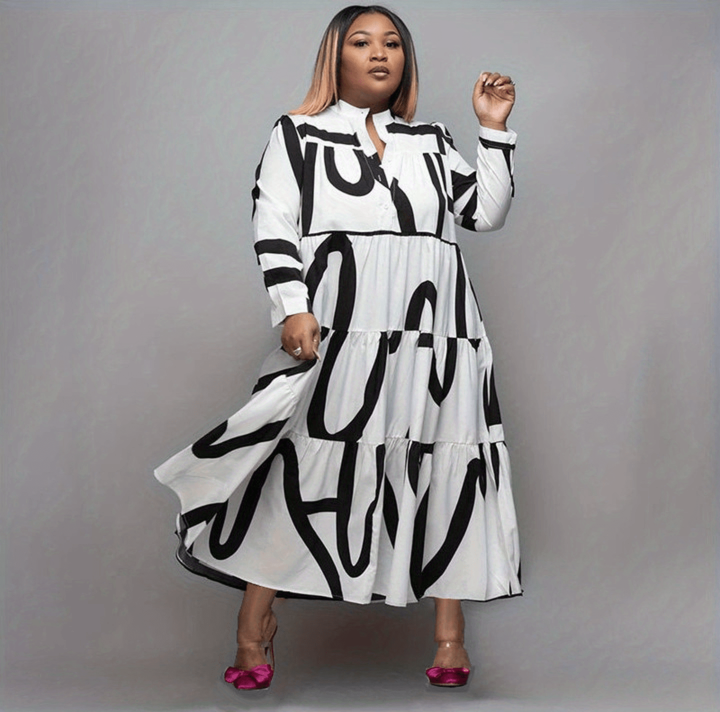 Mädchen, dieses Plus Size Kleid ist einfach der absolute Hingucker für jeden Anlass! Das Midikleid in fließendem Schnitt betont deine Kurven perfekt und fühlt sich dabei super bequem an. Die mehrlagigen Mesh-Ärmel verleihen dem Kleid eine zarte, elegante Note und machen es zum absoluten Eye-Catcher. Perfekt für Partys, Cocktail-Events, Hochzeiten oder einfach nur für einen besonderen Abend. Der Sommer-Stoff ist angenehm luftig und liegt nicht schwer auf der Haut. Ob in Grün, Weiß oder anderen trendigen Farben - dieses Kleid steht dir garantiert super! Die Passform ist für Plus Size optimal designed und schenkt dir ein tolles Selbstbewusstsein. Du fühlst dich weiblich, sexy und absolut wohl in deiner Haut. Kombinierbar mit verschiedenen Accessoires - mal mit High Heels für den glamourösen Look, mal mit Sandalen für den sommerlichen Tag. Ein Kleid, das in keinem Damenschrank fehlen sollte. Einfach anziehen und strahlen - du wirst sehen, wie die Köpfe sich nach dir umdrehen!