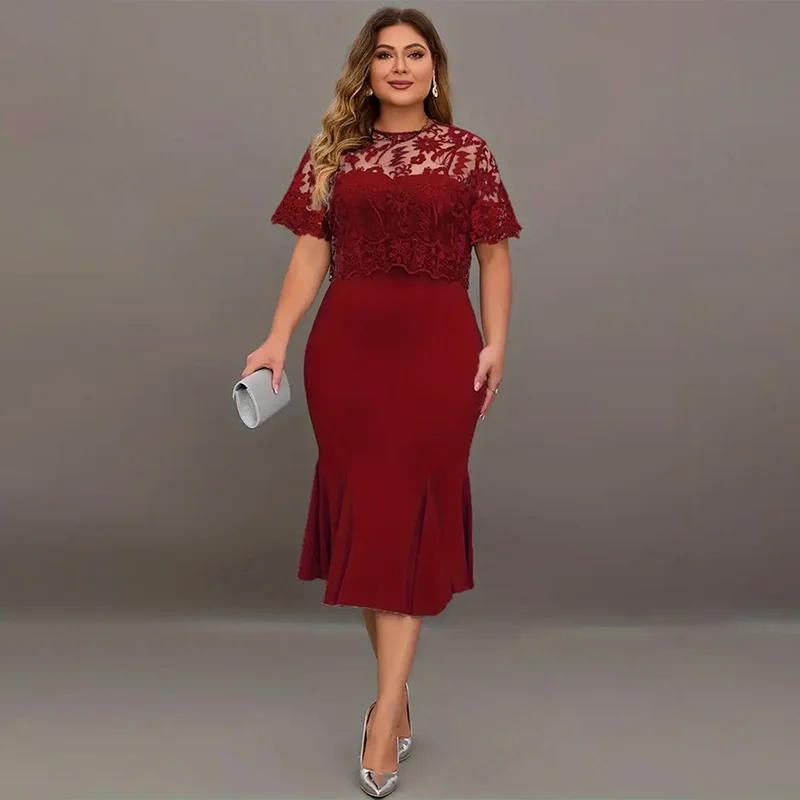 Damen Plus Size Midikleid - Elegantes Partykleid Mit Mesh-Ärmeln