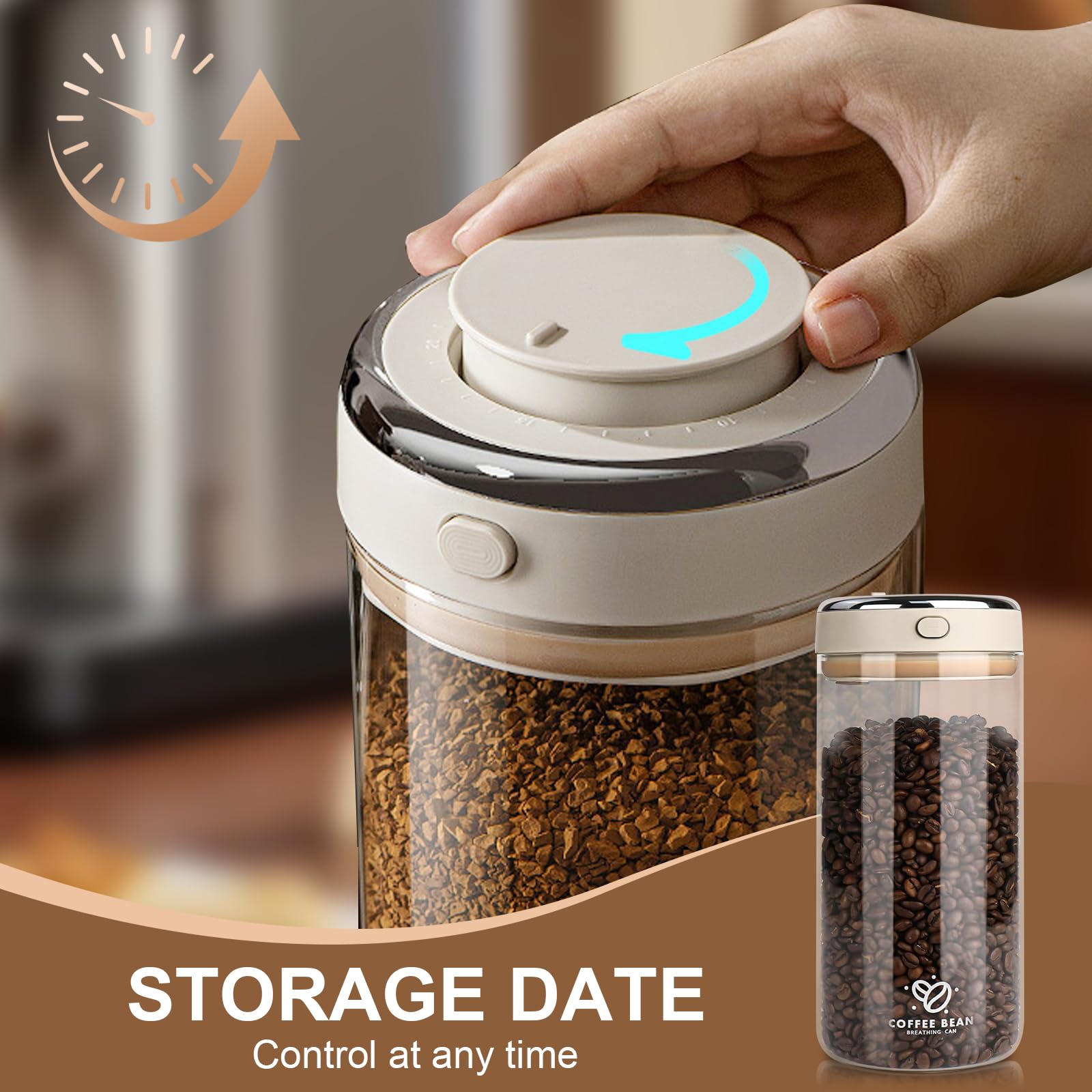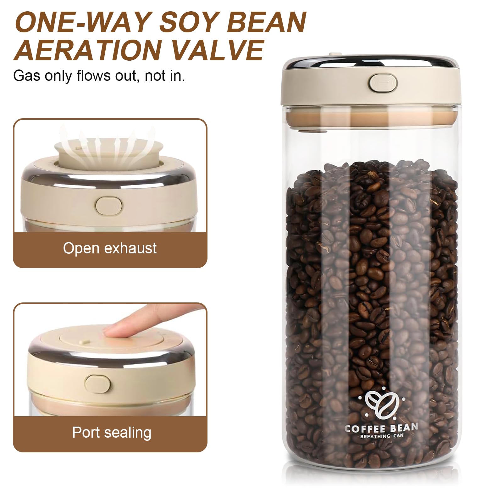 Pmueuff Kaffeebohnen Behälter 1,7L - Luftdichtes Glas Mit Datumsanzeige & Auslassventil