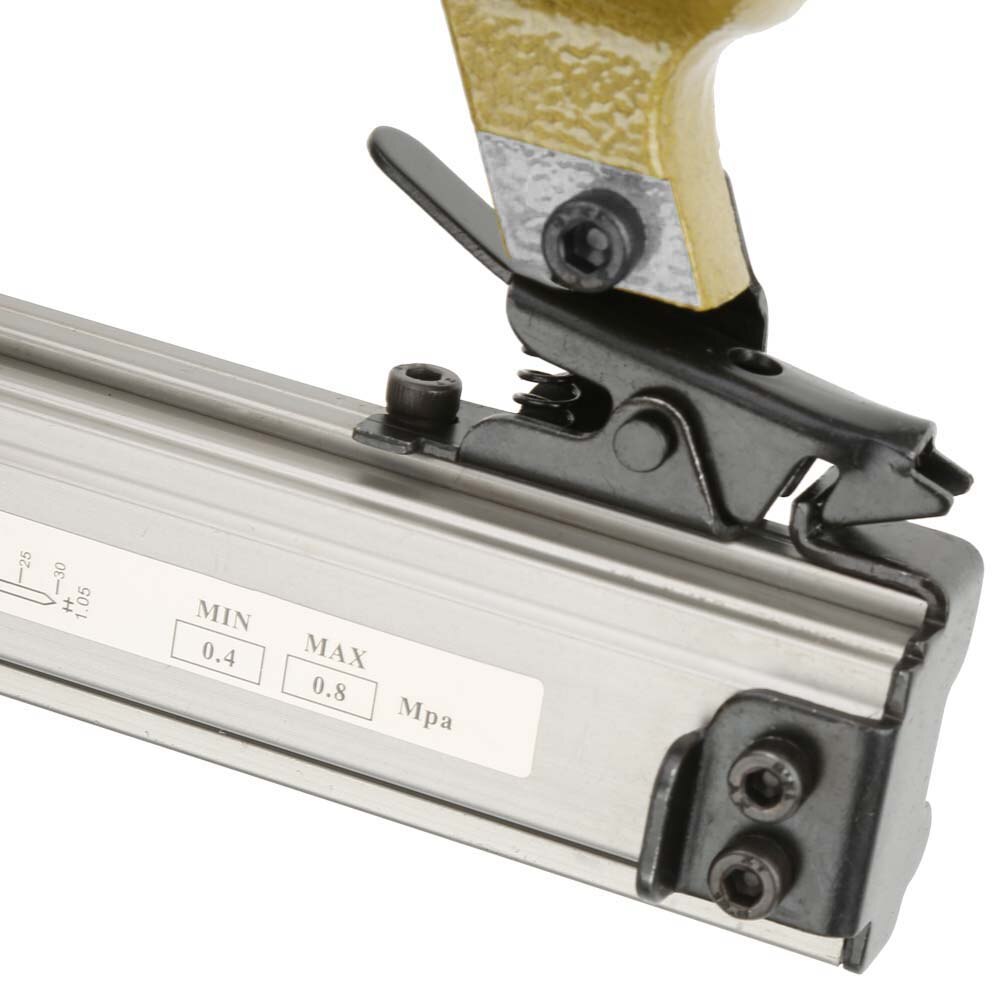 Profis arbeiten mit Luft - und jetzt du auch! Dieser pneumatische Brad-Nagler P625 ist ein Kraftpaket für deine Werkstatt. Nagellänge 10-25mm, Luftdruck 60-100 PSI - perfekt für Möbelbau und Renovierung. Mit 100 Nägeln im Magazin - kein ständiges Nachladen. Die robuste Kartusche hält ewig und die schnelle Luftrückführung macht dich zum Schnellarbeiter. Für Schränke, Türen, Dekoration - einfach alles aus Holz. Der ergonomische Griff liegt perfekt in der Hand und ermüdet nicht. Einfach an die Druckluft anschließen (1/4 Zoll Anschluss) und los geht's! Kein Strom nötig - nur Luftdruck. Macht aus jedem Hobbyhandwerker einen Profi. Einfach ausprobieren und staunen wie schnell du vorankommst!