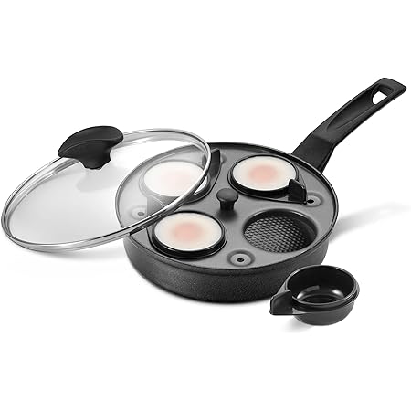 Perfekt pochierte Eier - ganz einfach! Diese CozyKit Pochierpfanne aus Edelstahl macht's möglich. Mit 2 großen 75ml Bechern in PFOA-freier Antihaftbeschichtung. Der 3-lagige Aluminiumboden sorgt für gleichmäßige Hitze auf allen Herdarten - auch Induktion! Die schnell kühlenden Drahtgriffe und der Glasdeckel mit Dampfauslass machen die Handhabung super sicher. Einfach die Eier in die Becher geben, Wasser erhitzen und in 4-6 Minuten hast du perfekt pochierte Eier für Benedict oder andere Leckereien. Die Einsatzbecher sind spülmaschinenfest - kaum Abwasch! Endlich professionelle pochierte Eier wie vom Frühstücksbuffet - aber ganz einfach zu Hause!