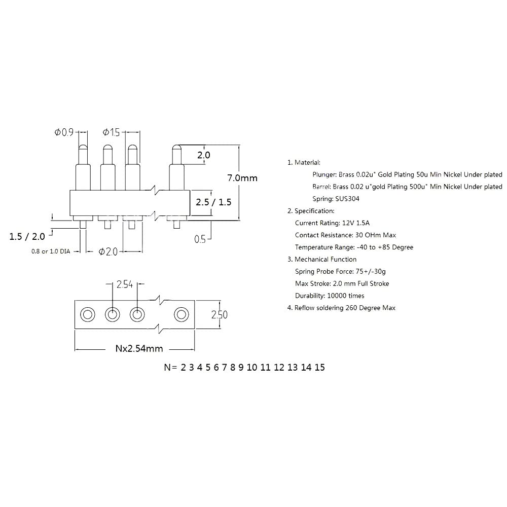 Pogo Pin Stecker 20Pin - Federbelasteter Stecker 2,54mm Raster 7,0mm Höhe Für Elektronik