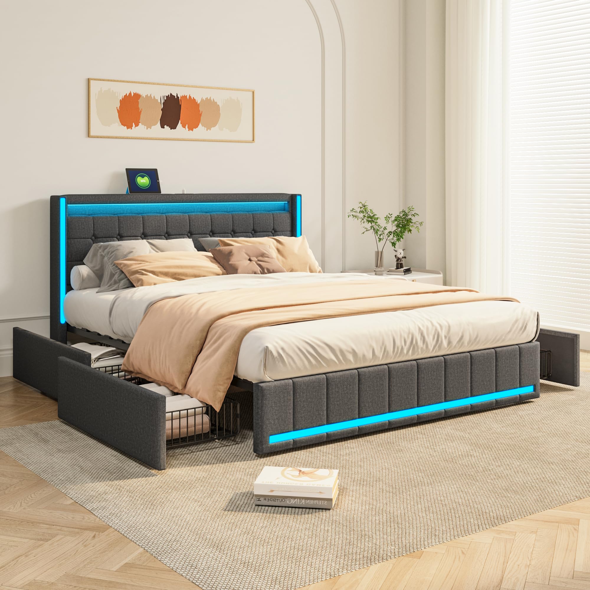 BRILVERDE Polsterbett 140x200cm - Stauraumbett Mit Hydraulik, Samt Grau