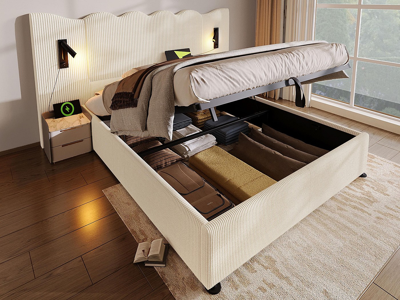 Kayan Polsterbett 180x200cm - Boxspringbett Mit LED-Beleuchtung Und USB-Ladefunktion