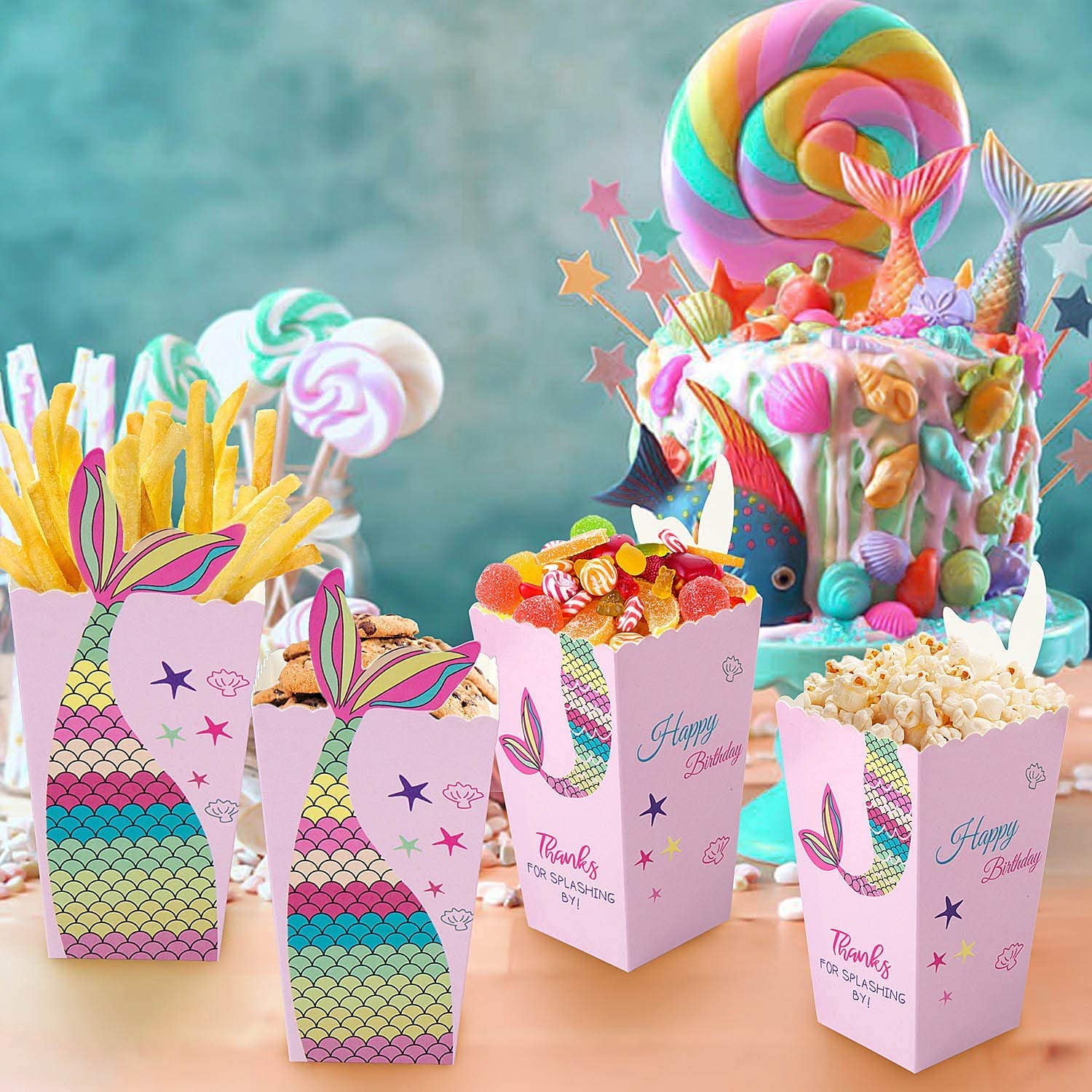 TXDAMAI Meerjungfrau Popcorn Boxen - 12 Stück Papp-Behälter Für Party Snacks & Süßigkeiten