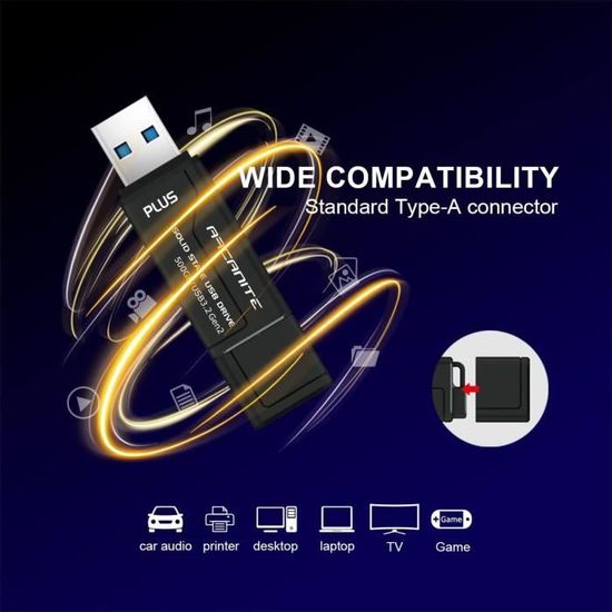 Rasant schnell und super kompakt - die AXE MEMORY Portable SSD! Mit 500GB Speicherplatz und bis zu 600MB/s Lesegeschwindigkeit (500MB/s Schreiben) überträgst du deine Dateien im Flugtempo. Das UASP-Protokoll macht's möglich - bis zu 70% schneller als normale USB-Sticks! Der USB 3.2 Gen2 Anschluss ist abwärtskompatibel und passt an so gut wie jeden Computer. Das mattschwarze Design sieht nicht nur cool aus, sondern ist auch praktisch: Abgerundete Ecken und ein Schlüsselband-Loch für unterwegs. Hergestellt in Taiwan mit hochwertigen Komponenten - staubdicht, stoßfest und temperaturbeständig. Perfekt für Fotos, Videos, Spiele oder Backups. Und mit 2 Jahren Herstellergarantie bist du auf der sicheren Seite! Ein absolutes Must-have für alle, die viel unterwegs sind!