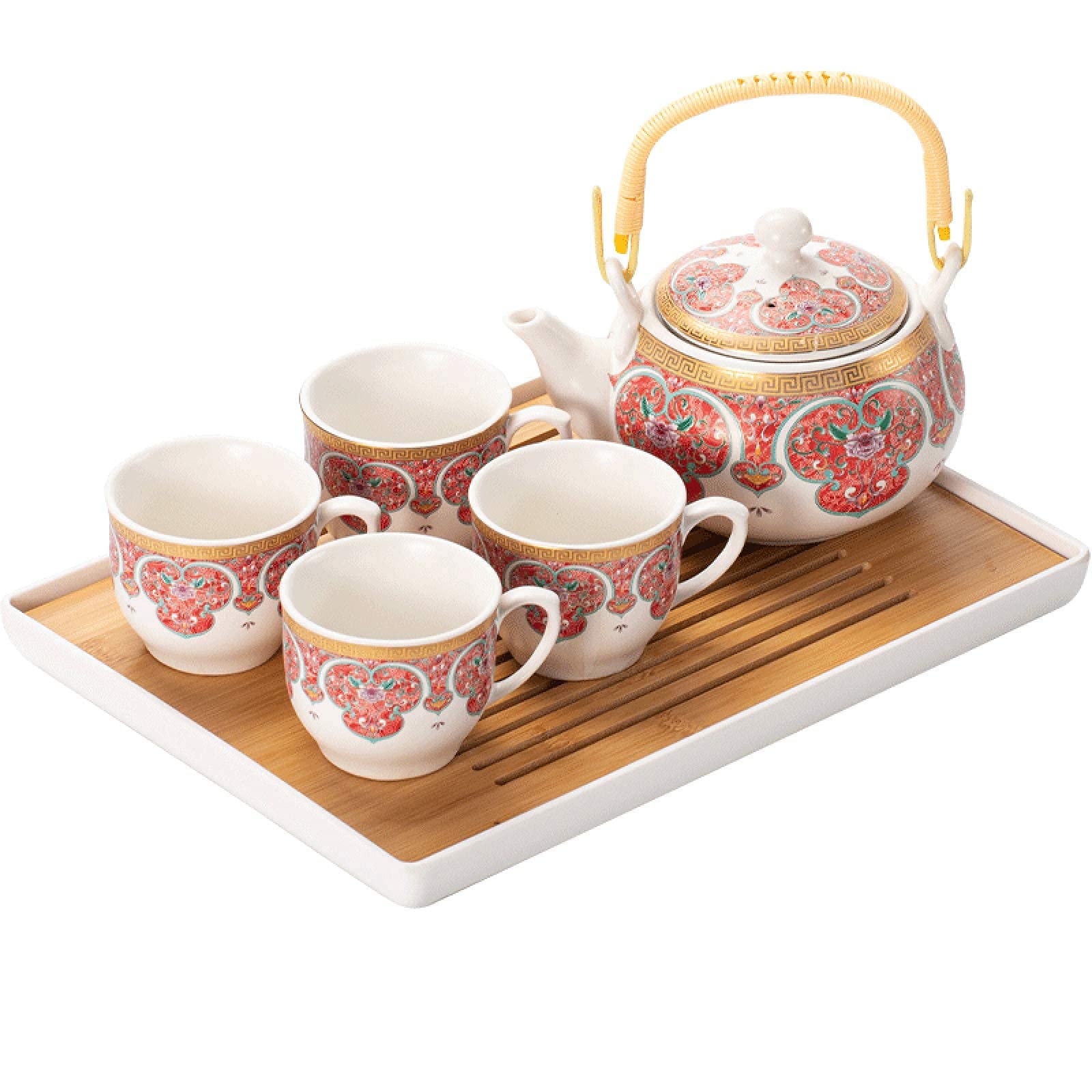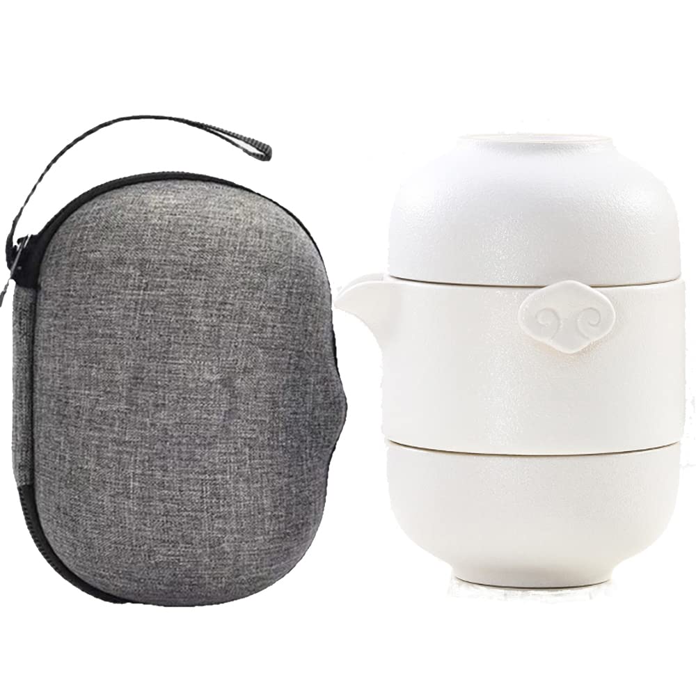 TAMUME Reise-Teeservice Porzellan - Teekanne Mit 3 Tassen & Tragetasche
