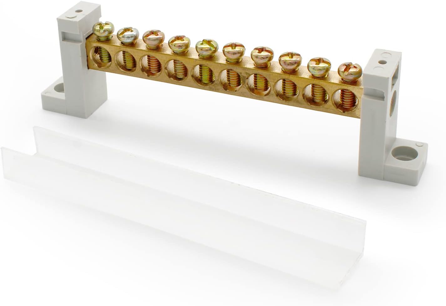 2 Stück Erdungsschiene Messing - 10 Positionen Klemmenblock, 75,5 Mm Lang, M4 Schrauben, Für Elektroverteilung
