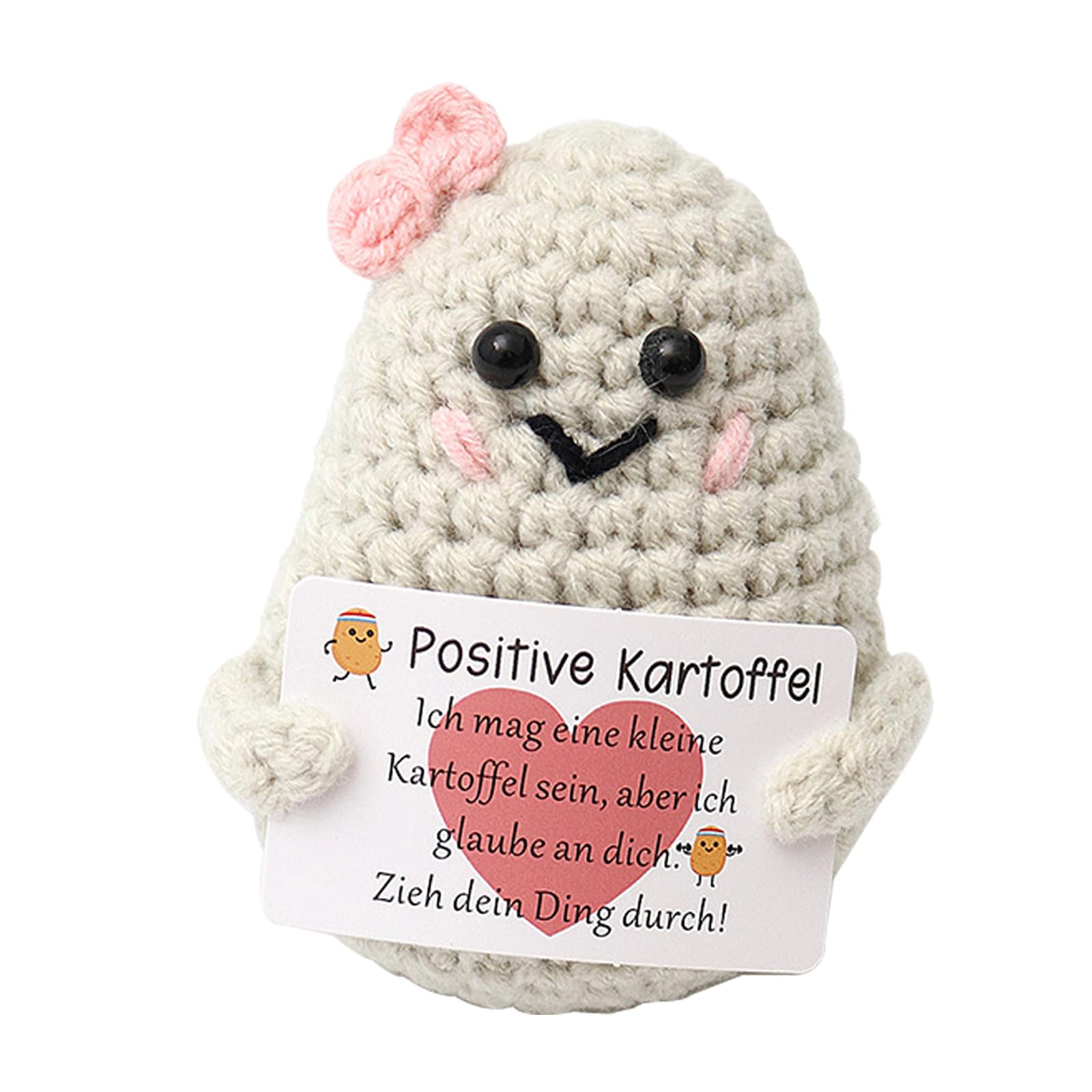 Diese süße Kartoffel ist mehr als nur ein Spielzeug - sie ist ein echter Seelentröster! Handgenäht aus weicher Wolle und Baumwolle, etwa 7x12 cm groß, perfekt für die Hosentasche. Im Set enthalten: die kuschelige Kartoffel, eine Mini-Karte mit aufbauenden Sprüchen und ein Glücksbringer aus Edelstahl mit eingravierten Kartoffel-Motiven. Super als Aufmunterung für Prüfungen, bei Krankheit oder einfach wenn jemand mal einen schlechten Tag hat. Macht deinen Liebsten eine Freude und zeig ihnen, dass du an sie denkst. Ob als Abschiedsgeschenk, für Freunde in schwierigen Zeiten oder als kleine Aufmerksamkeit für Kollegen - diese Kartoffel bringt Lächeln ins Gesicht! Einfach in die Tasche stecken und überallhin mitnehmen, wenn mal wieder Motivation needed ist.