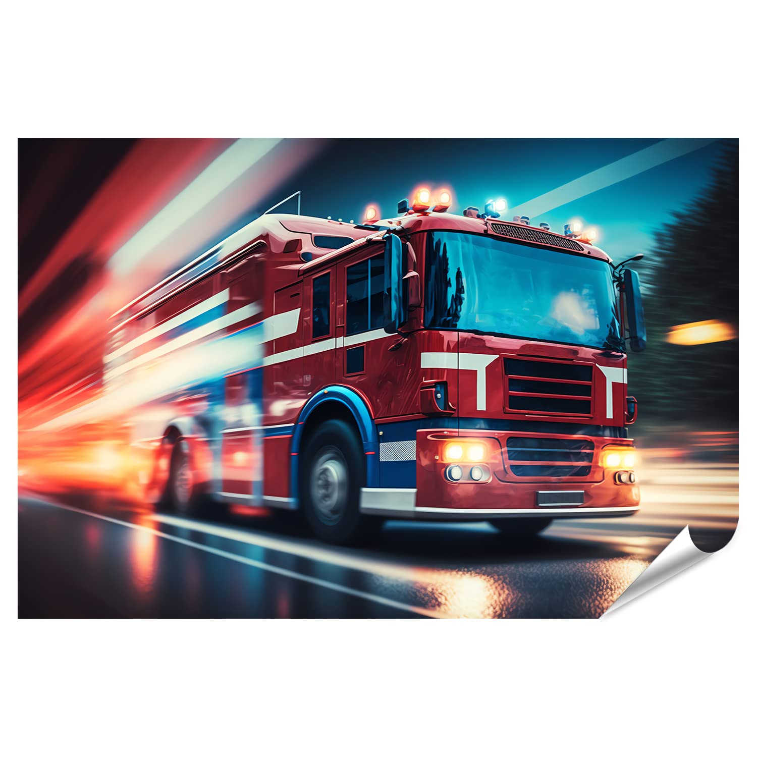 Dieses mega Poster von islandburner ist ein echter Hingucker! Das Motiv zeigt ein Feuerwehrauto bei Nacht mit dramatischen Stadtlichtern und Flammen - einfach spektakulär. Mit 90x60cm ist es ein XXL-Poster, das in jedem Raum Aufmerksamkeit erregt.