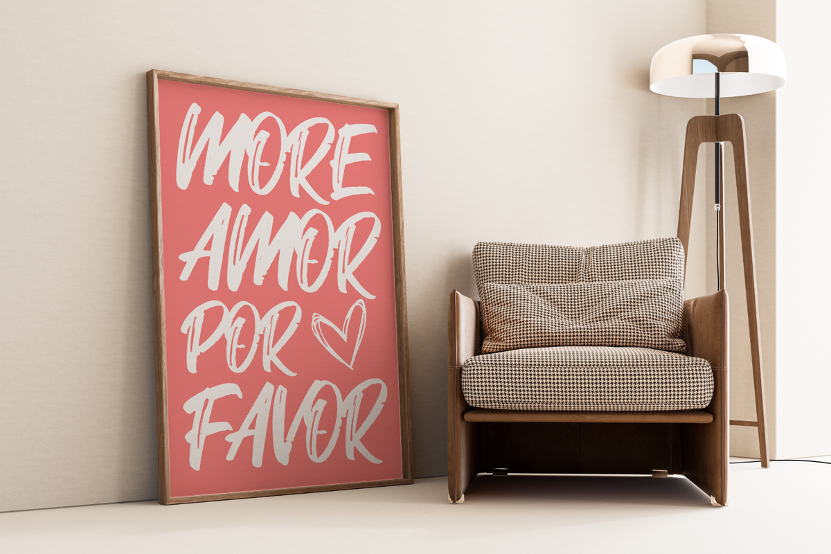 Amor Por Favor Poster Mit Rahmen - 45x30cm Typografie Wandbild