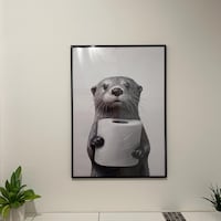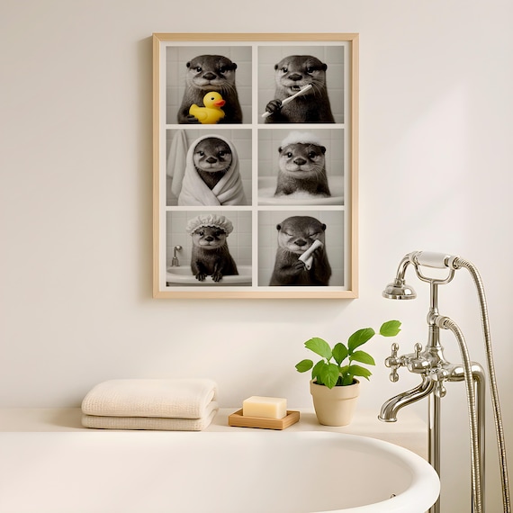 Dieses Otter-Poster ist einfach nur goldig! Stell dir vor: Ein kleiner Otter mit nem Handtuch-Turban auf dem Kopf und Shampoo-Flaschen in den Pfoten - frisch geduscht und bereit für die Wellness-Oase! Das schwarz-weiß Design sieht total stylisch aus und passt super ins Bad, Gäste-WC oder auch ins Wohnzimmer.