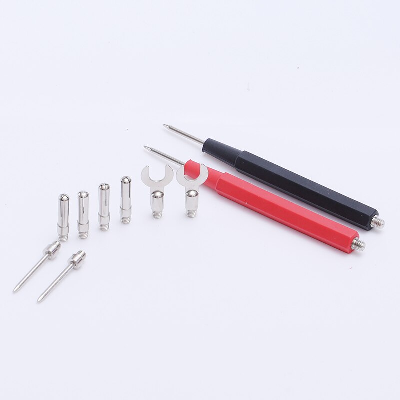 Das Set kommt mit je einer roten und schwarzen Sonde, jeweils 15,2 cm lang. Die Messing-Bauteile mit Edelstahlfedern halten ewig und die vollisolierte Ausführung ist sicher bis CAT III 1000V und 10A. So kannst du auch bei höheren Spannungen beruhigt messen.