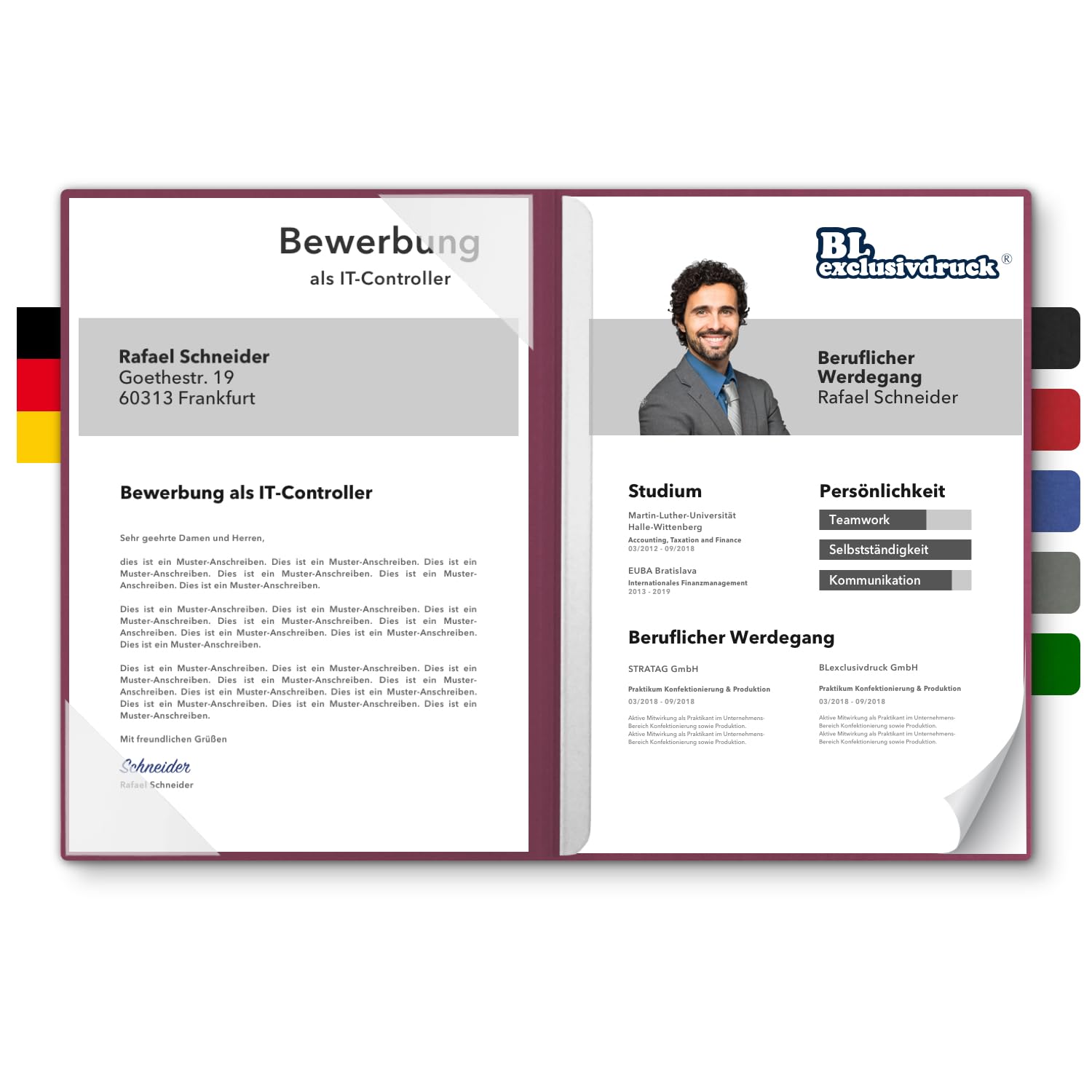 5 Bewerbungsmappen Bordeaux - Mit Prägung 'Bewerbung' BL-exclusivdruck