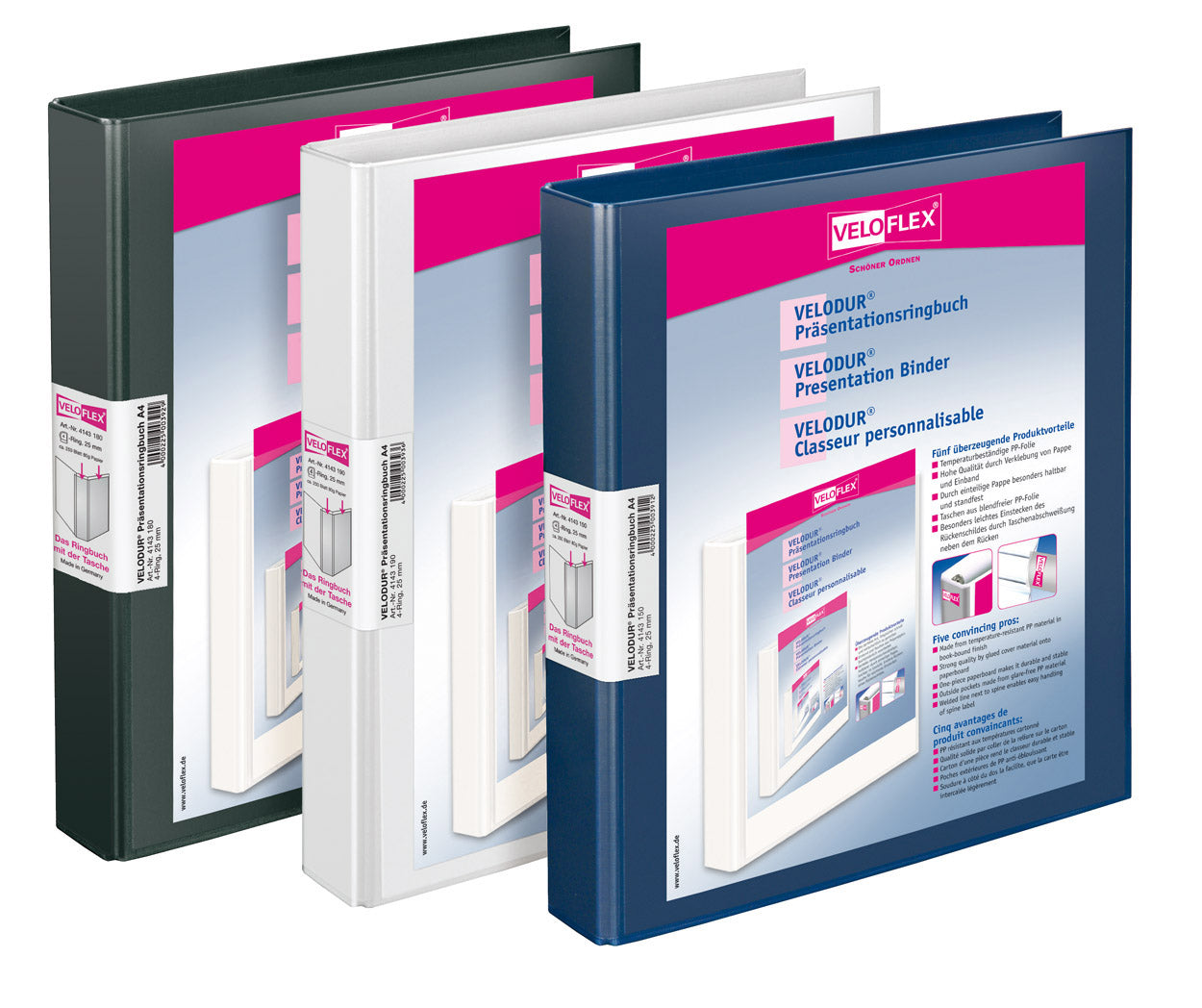 VELOFLEX Präsentations-Ringordner A4 - Weiß Mit Hebelmechanik Und Taschen