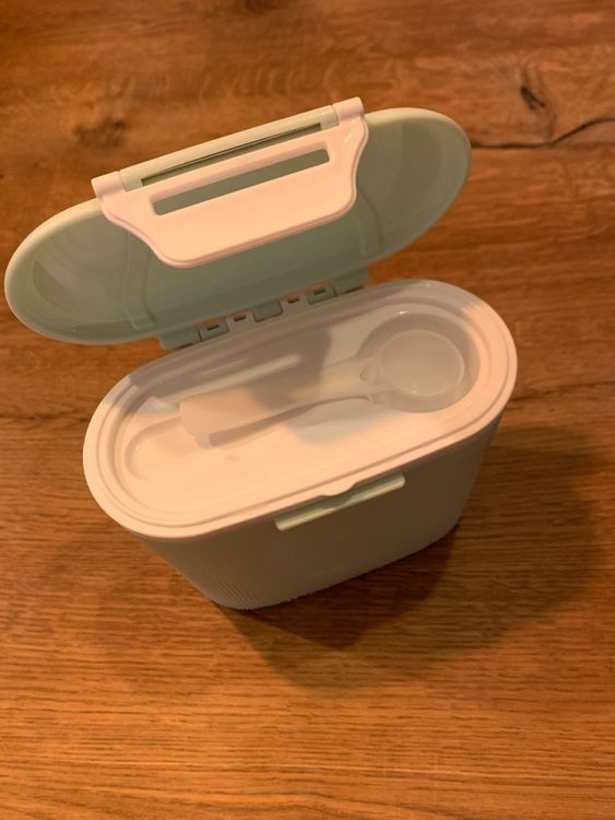 Hey junge Eltern! Diese Milchpulver-Dose ist total praktisch für unterwegs. Mit süßem Dino-Design und super Verschluss - da bleibt das Pulver garantiert trocken!