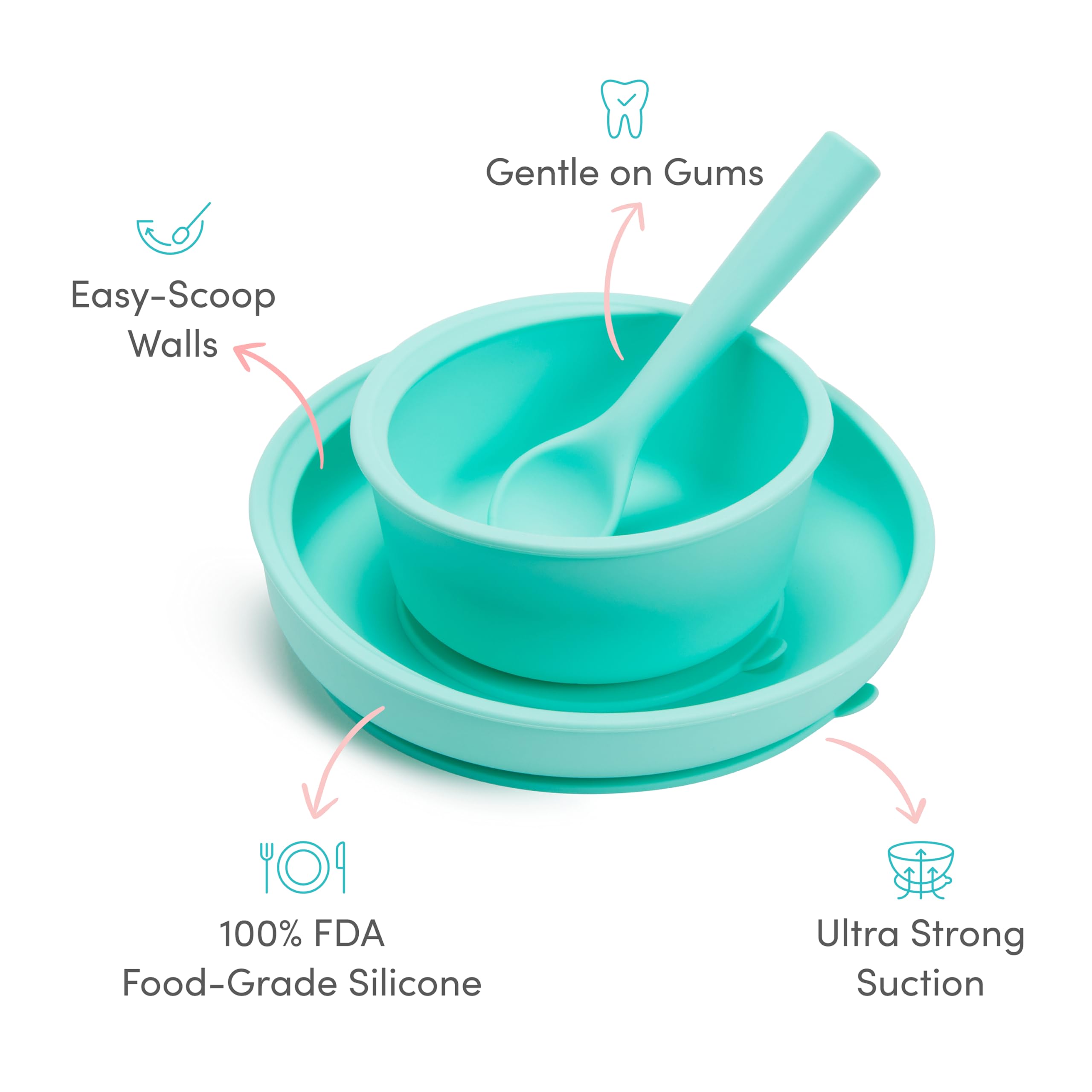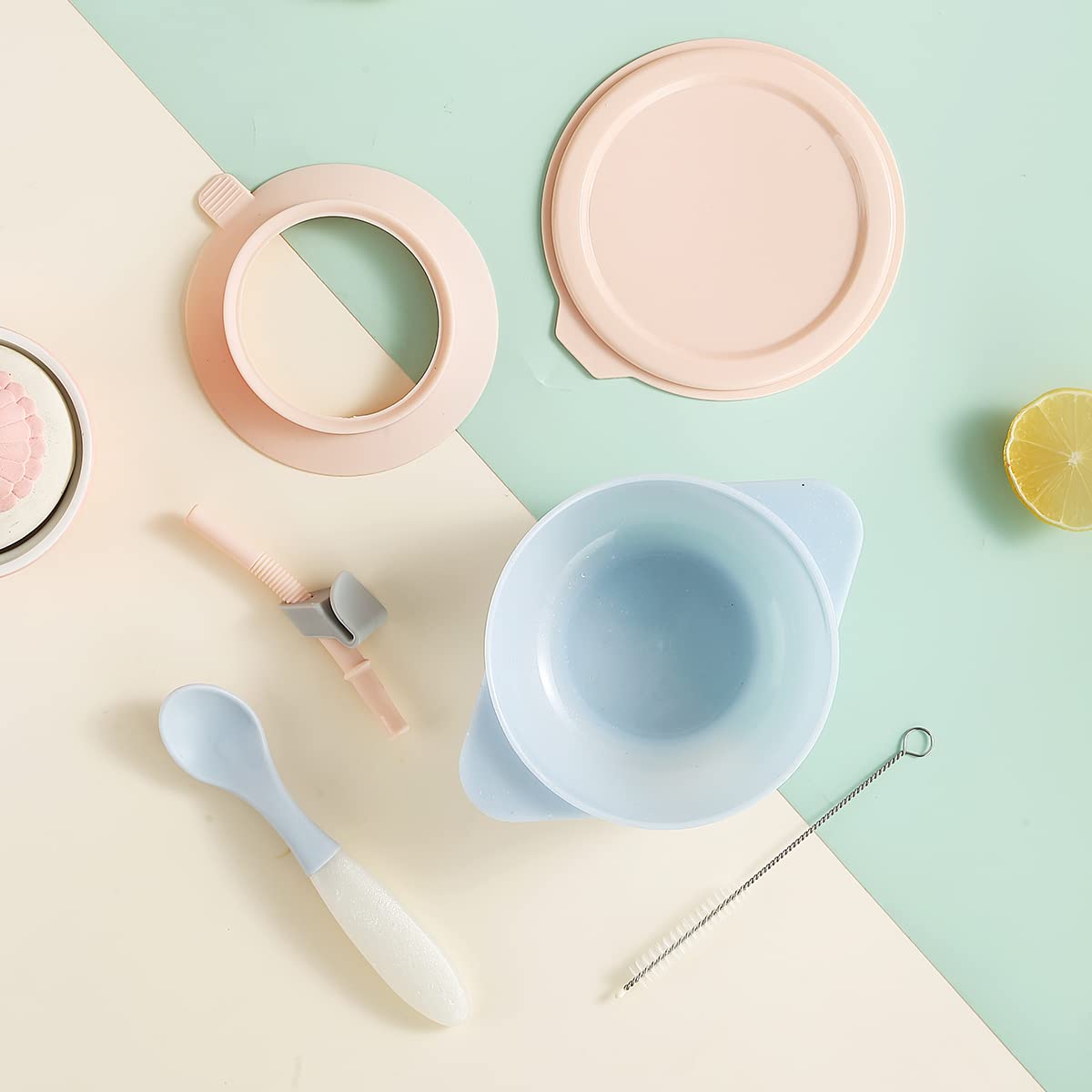 Kyraton Baby-Schüssel Mit Saugnapf - Praktische Silikonschale Mit Strohhalm & Löffel Für Milch, Suppe & Eis