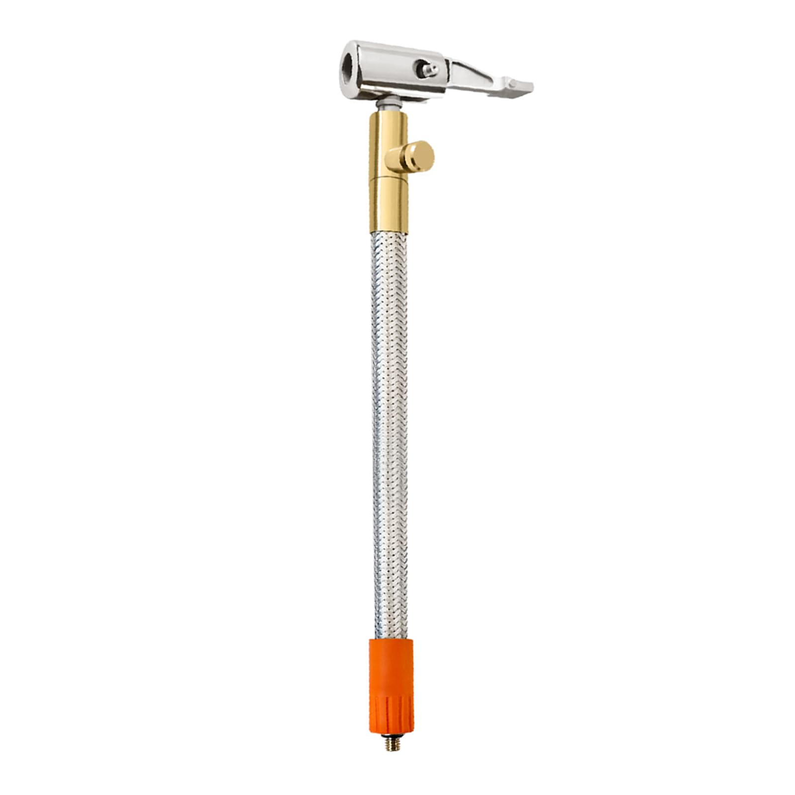 Nie wieder mühsam Reifen aufpumpen! Dieser 20 cm lange Reifenfüller-Adapter aus robustem Gummi mit Metallanteilen macht das Befüllen deiner Reifen zum Kinderspiel. Einfach das Adapterende auf deinen vorhandenen Luftschlauch schrauben, den Kopf auf das Ventil klicken - und schon kann's losgehen! Besonders praktisch: Der Adapter verfügt über einen verriegelbaren Clip, sodass er während des Pumpens nicht abrutscht und keine Luft entweicht. Perfekt geeignet für alle gängigen Fahrzeugtypen wie Auto, Motorrad oder Fahrrad. Das langlebige, mit Nylon umwickelte Gummimaterial bleibt auch bei häufigem Gebrauch flexibel. Mit den Maßen 20x2x1,5 cm in schwarzer Optik ist der Adapter handlich und passt in jedes Werkzeugset. Lieferung inklusive einem verriegelbaren Luftfutter - alles was du brauchst für schnelles, sauberes Aufpumpen ohne lästiges Festhalten!