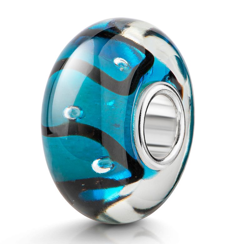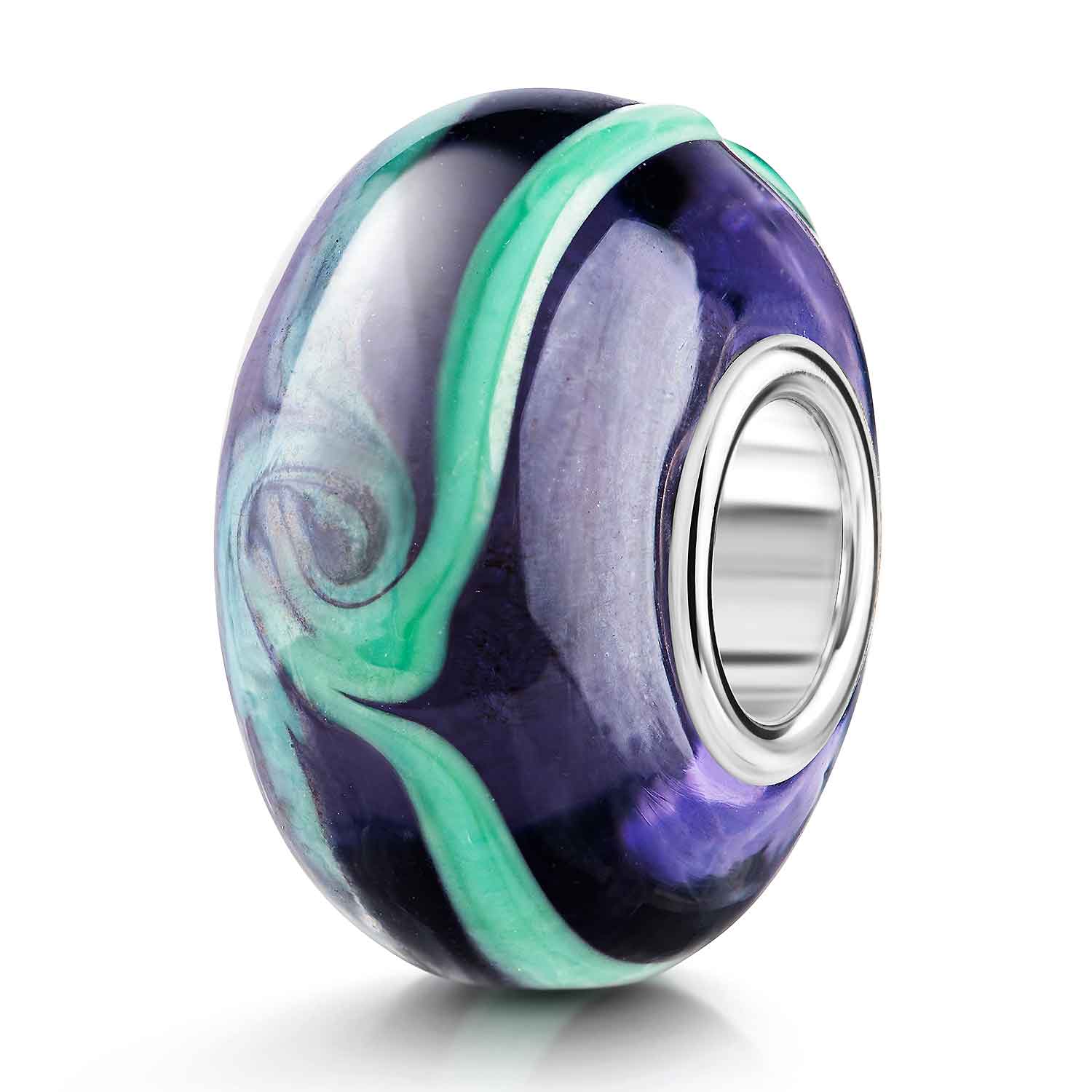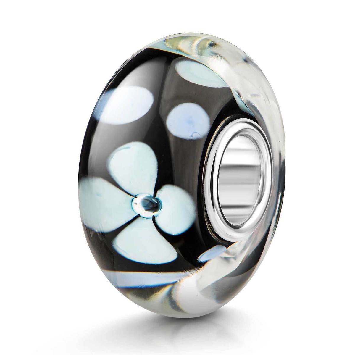 MATERIA Blumen Glas Bead Primel - Schwarz Blau Türkis 925 Silber