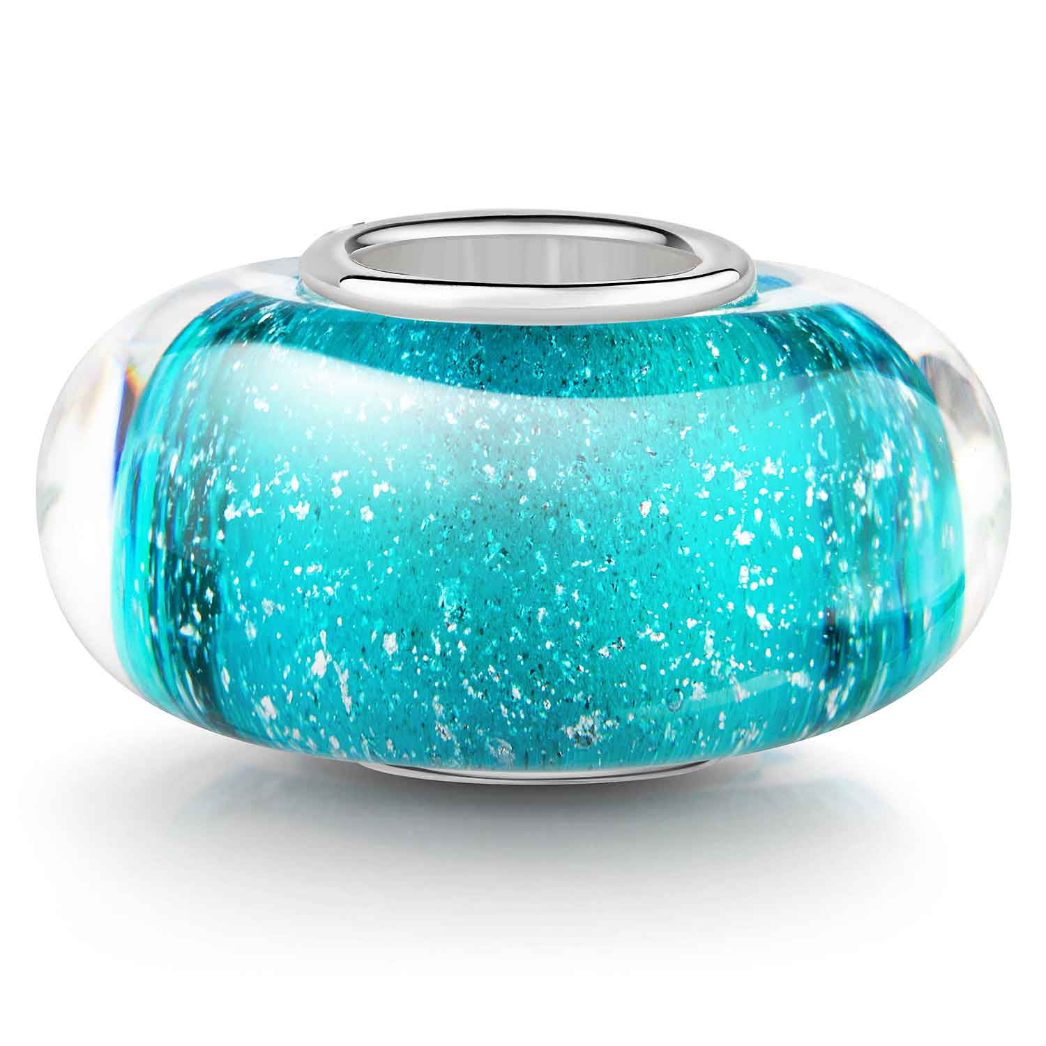 Oh, dieser MATERIA Bead ist einfach wunderschön! Das schwarze Glas mit den blau-türkisen Primel-Blüten sieht richtig edel aus. Aus hochwertigem Glas mit 925 Sterling Silber Hülse - da hast du was Besonderes! Passt auf alle gängigen Beads-Armbänder bis 4,4mm Stärke. Also kompatibel mit allen großen Marken. Maße: 7x13mm, nur 2,0g leicht. Macht sich super an Armband oder Kette und ist ein absoluter Blickfang. MATERIA steht für langlebigen Qualitätsschmuck - das merkst du sofort. Perfekt als Geschenk oder um deine eigene Schmuck-Kollektion zu erweitern. Einfach bezaubernd!