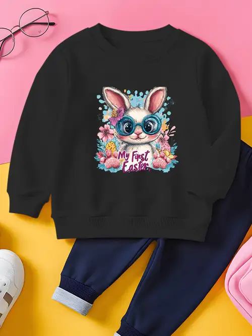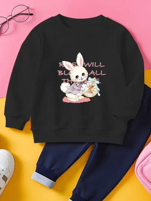 Mädchen Sweatshirt Mit Kaninchen Print - Baumwolle Sweatshirt Für Kinder