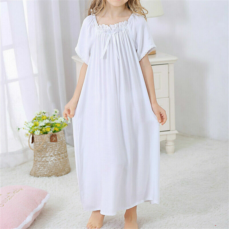 Wie eine kleine Prinzessin schlafen! Dieses süße ärmellose Nachthemd für Mädchen hat wunderschöne Spitzenverzierungen an den Schultern und Rüschen-Details. Super weich und bequem.