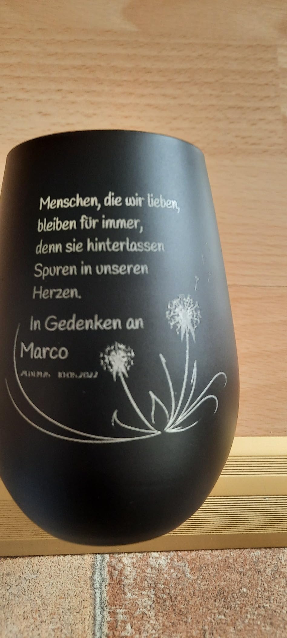 Ein ganz besonderes Andenken für einen geliebten Menschen: Dieser handgefertigte Teelichthalter aus massivem Fichtenholz (8x8x8 cm) wird persönlich mit dem Namen des Verstorbenen und den Lebensdaten bedruckt. Statt einer unpersönlichen Geldspende schenkst du damit etwas wirklich Wertvolles, das Trost spendet. Hergestellt von einem Tischler aus dem Eichsfeld - jedes Stück ein Unikat mit natürlicher Maserung. Das sanfte Licht der Kerze bringt Hoffnung in dunklen Trauerstunden und kann neben einem Foto des Verstorbenen einen würdigen Platz finden. Einfach Namen und Daten angeben, und in wenigen Tagen ist dieses berührende Erinnerungsstück bei dir - Made in Germany mit viel Herz.
