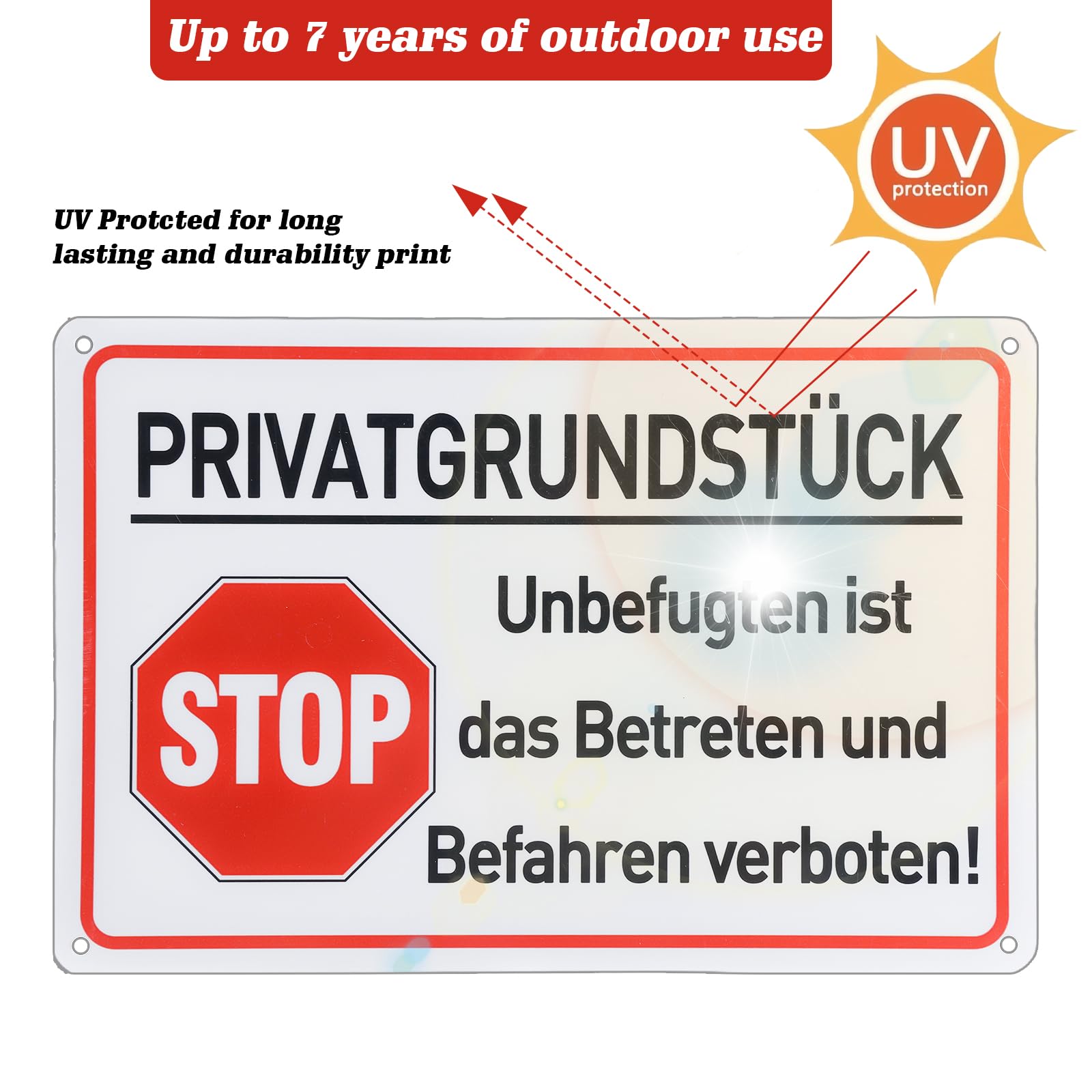WIYETY Achtung Privatgrund Schild - 2-teiliges Set Aus Aluminium, Wetterfest & Reflektierend