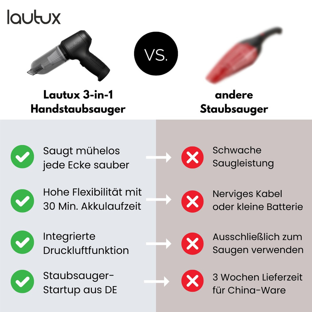 Tierhaare adé! Diese geniale Turbodüse von lautux macht deinen Handstaubsauger zum Profi-Gerät. Mit rotierender Bürste entfernt sie selbst tiefsitzende Tierhaare aus Teppichen, Sofas und Autositzen. Die integrierten Fusselstreifen nehmen zusätzlich Haare und Fusseln von empfindlichen Stoffen auf. Perfekt für Hundebesitzer, Katzenfreunde und Allergiker! Einfach auf den Turbotastic Pro 2 Handstaubsauger stecken und los geht's. Die Bürste lockert Fasern gründlich, während der Sauger alles wegpustet. Leicht zu reinigen - Haare einfach von Bürste und Streifen abziehen. Robust verarbeitet für lange Haltbarkeit. Endlich saubere Polster, frische Teppiche und gepflegte Autositze! Das Upgrade, das deinen Staubsauger zum Alleskönner macht. Für alle, die es wirklich sauber wollen!