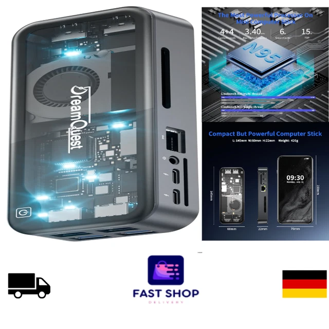 DreamQuest Mini PC Stick Windows 11 Pro - Intel N95 12GB RAM 512GB SSD Dual HDMI
