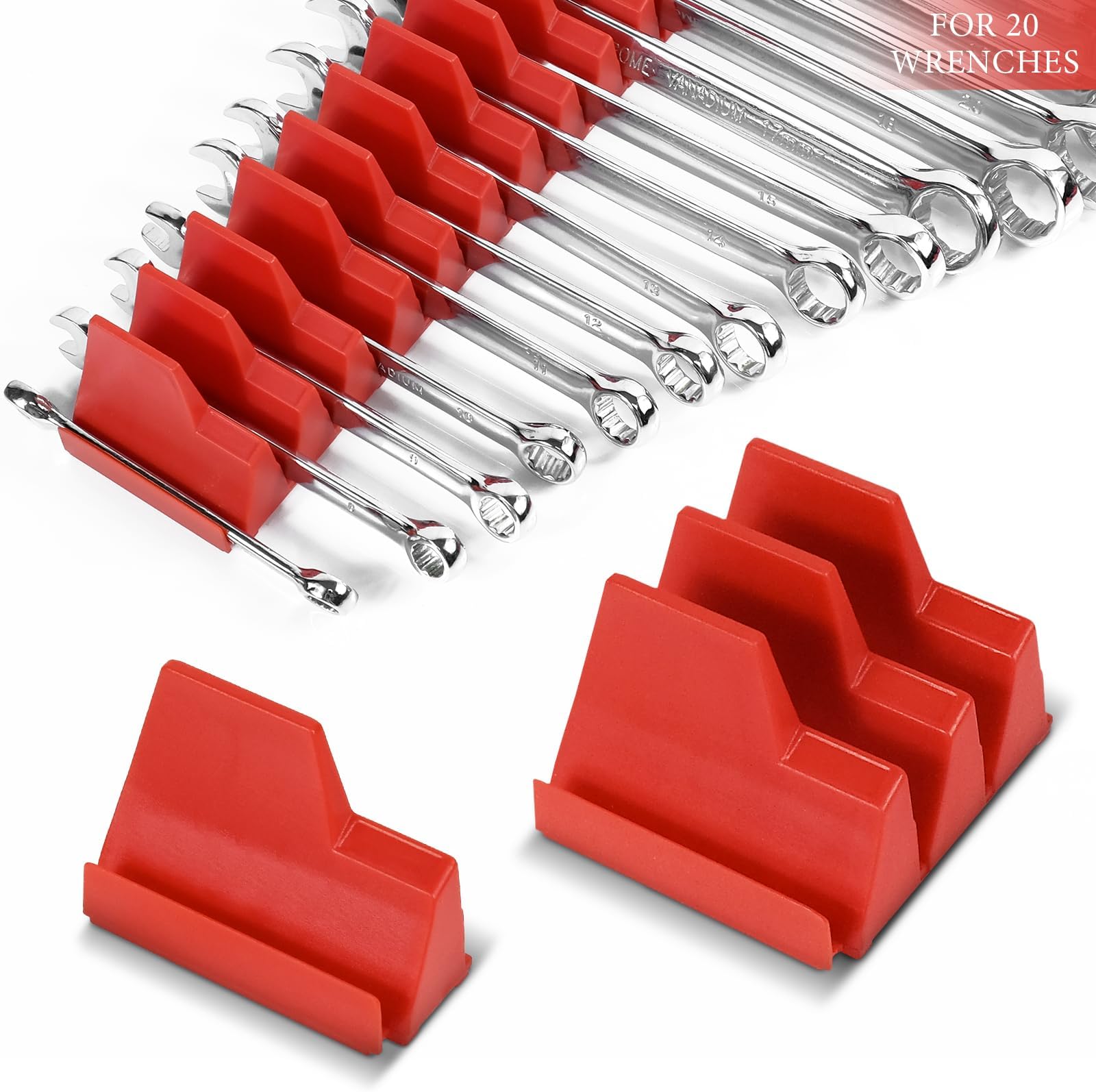 Endlich Ordnung im Werkzeugkasten! Der Ernst Manufacturing Wrench Pro Organizer hält deine Schraubenschlüssel perfekt sortiert und griffbereit. Das modulare Design ist super flexibel - du kannst es für beliebig viele Schlüssel zusammenstellen oder auseinandernehmen. Passt für Größen von 6 mm bis 38 mm und für alle Schlüsseltypen: Kombinationsschlüssel, offene Schlüssel, Ratschenschlüssel - alles kein Problem! Die Schlüssel stehen schön abgewinkelt in einer Reihe, sodass du sofort siehst, was du brauchst. Mit den mitgelieferten Etiketten behältst du immer den Überblick über die Größen. Und die rutschfeste Basis mit Klampen verhindert, dass der Organizer in der Schublade verrutscht. Hergestellt in den USA mit lebenslanger Garantie - Qualität, die hält! Einfach die Schlüssel reinstecken und sich über mehr Platz und Ordnung freuen.