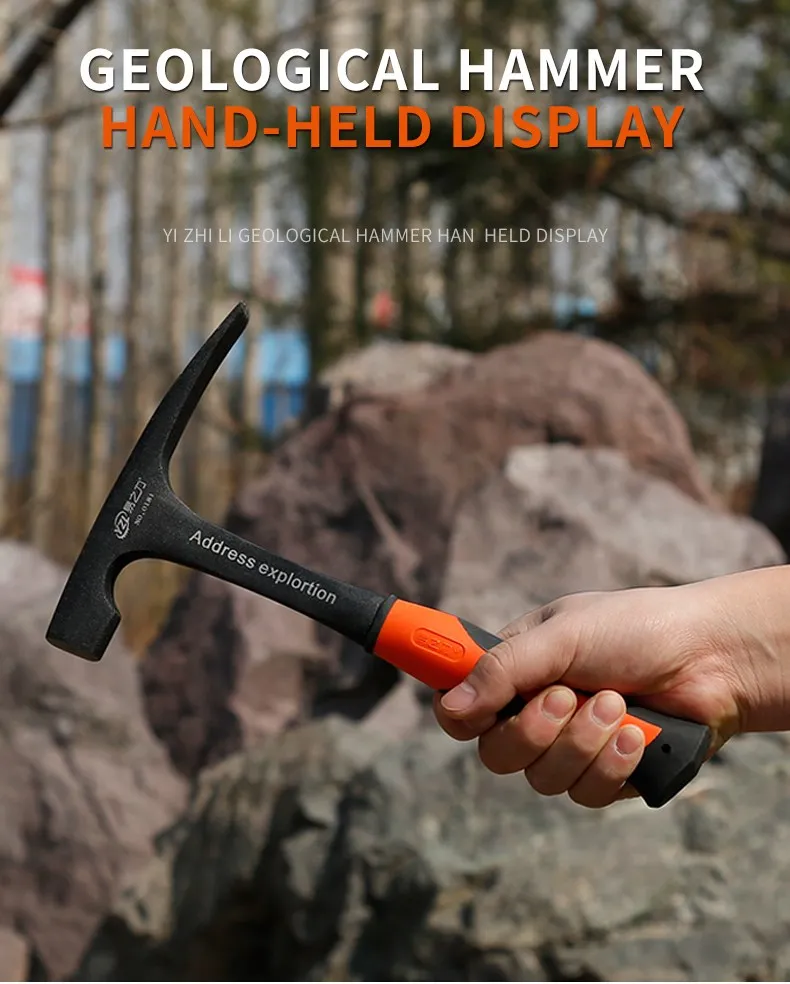 Für Hobby-Geologen und Profis: Dieser Explorationshammer ist dein bester Begleiter bei Stein-Sammlungen! Mit 290mm Gesamtlänge und spitzer Form perfekt für Gesteinsproben. Der Hammerkopf aus hochwertigem Kohlenstoffstahl ist super hart und verschleißfest. Der TPR-beschichtete Griff liegt sicher in der Hand und rutscht nicht. Einteilig geschmiedet und hochentemperiert für maximale Stabilität. Ideal für magmatische und metamorphe Gesteine. Mit 800g Gewicht genau die richtige Balance zwischen Kraft und Handlichkeit. Ob du nun Steine sammelst, Mineralien suchst oder einfach nur gerne in der Natur bist - dieser Hammer ist ein Muss!
