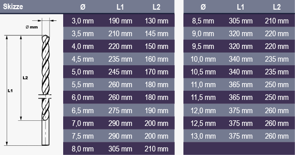 Projahn Spiralbohrer HSS-Co UF-L - 3,3 X 155 Mm, Extra Lang Für Tiefe Bohrungen