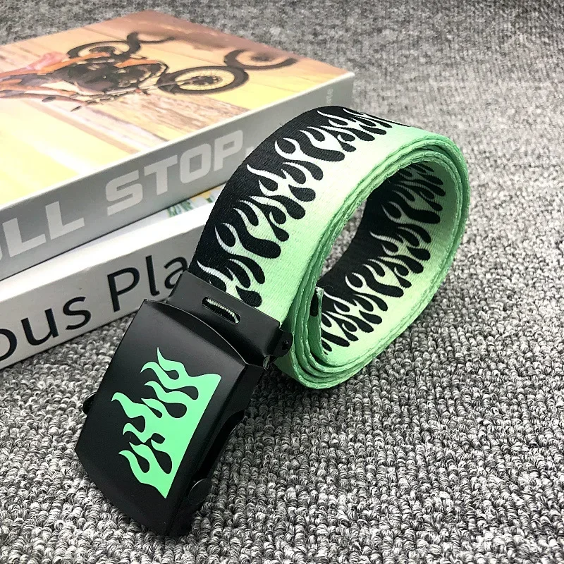 Psdndeww Flammengürtel - Baumwolle Metall Schnalle Verstellbar Streetwear
