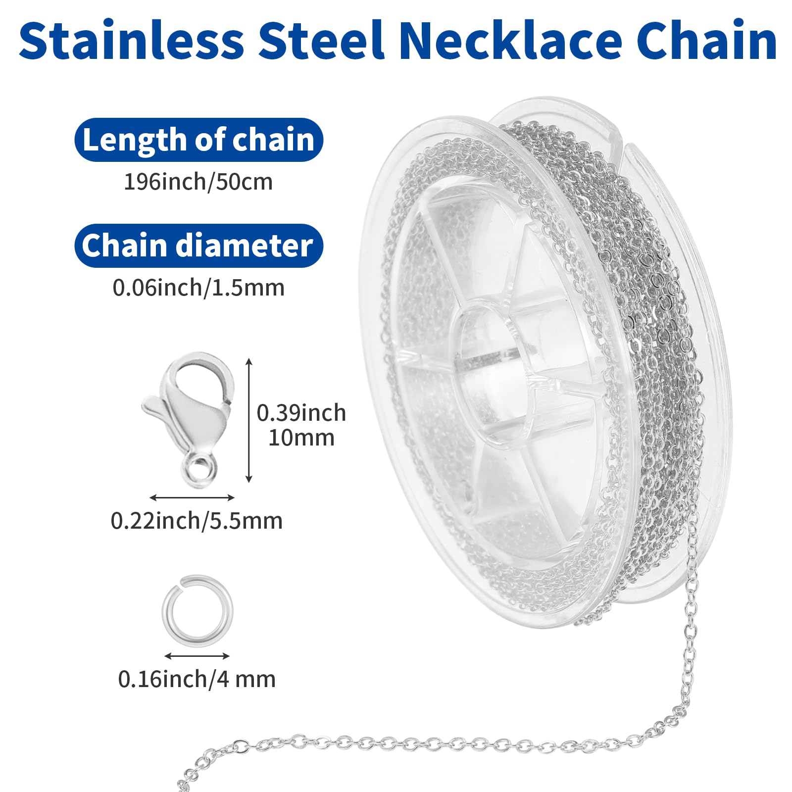 Ptwola Edelstahl Schmuckkette 10m - 1,5mm Mit Karabinern & Ringen