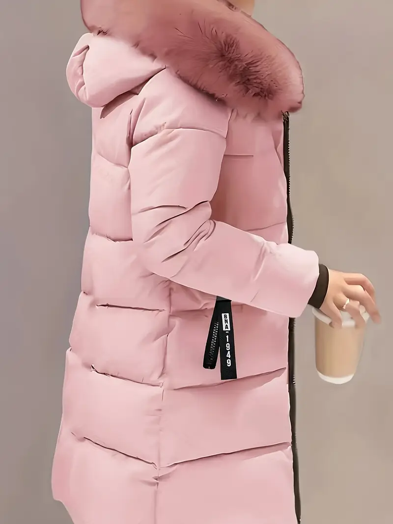 Damen Wintermantel Lang - Pufferjacke Mit Kunstfellkragen & Kapuze