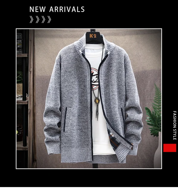 Stylische Herren-Strickjacke, die zu allem passt! Perfekt fürs Büro, Dates oder einfach für den Alltag. Der trendige Stehkragen und die langen Ärmel geben dir einen modernen, lässigen Look.