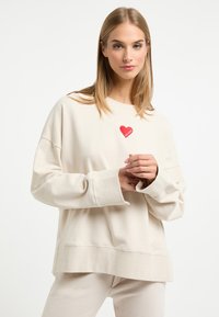 People Wear Organic Sweat-Pullover - Hellbeige Mit Blumenprint Für Mädchen