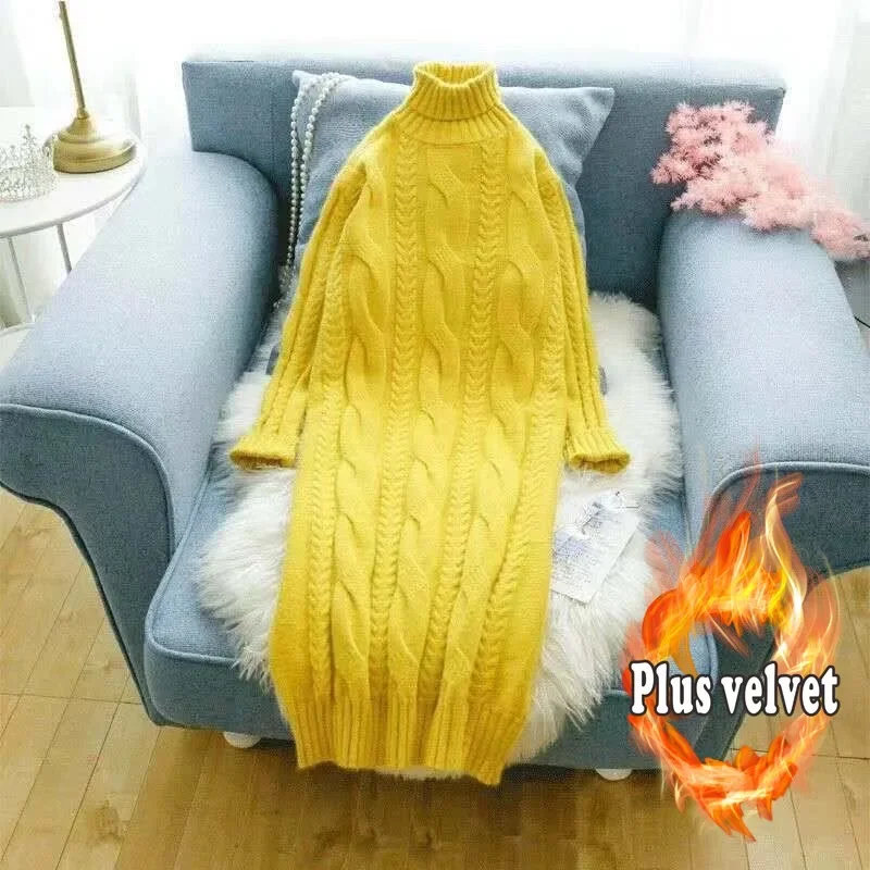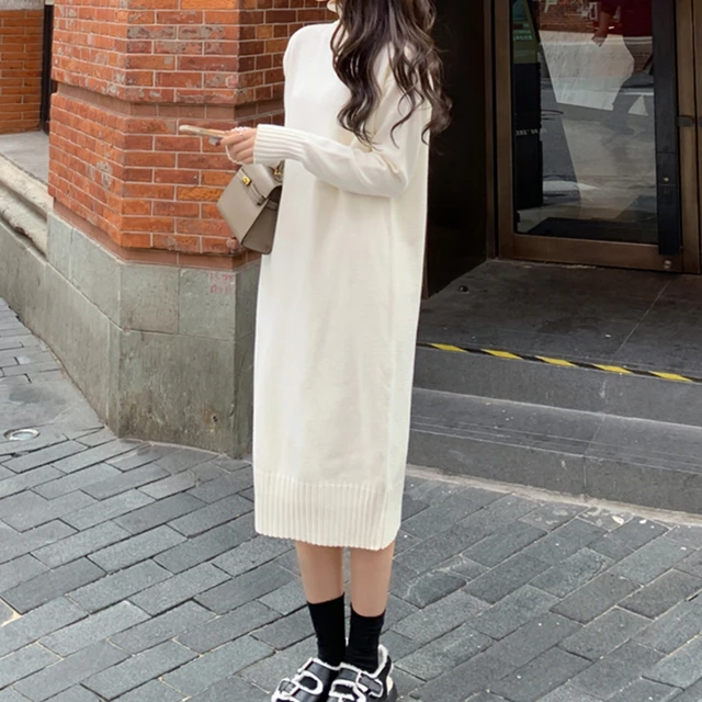 Damen Pullover Kleid - Warmes Strickkleid Mit Rollkragen