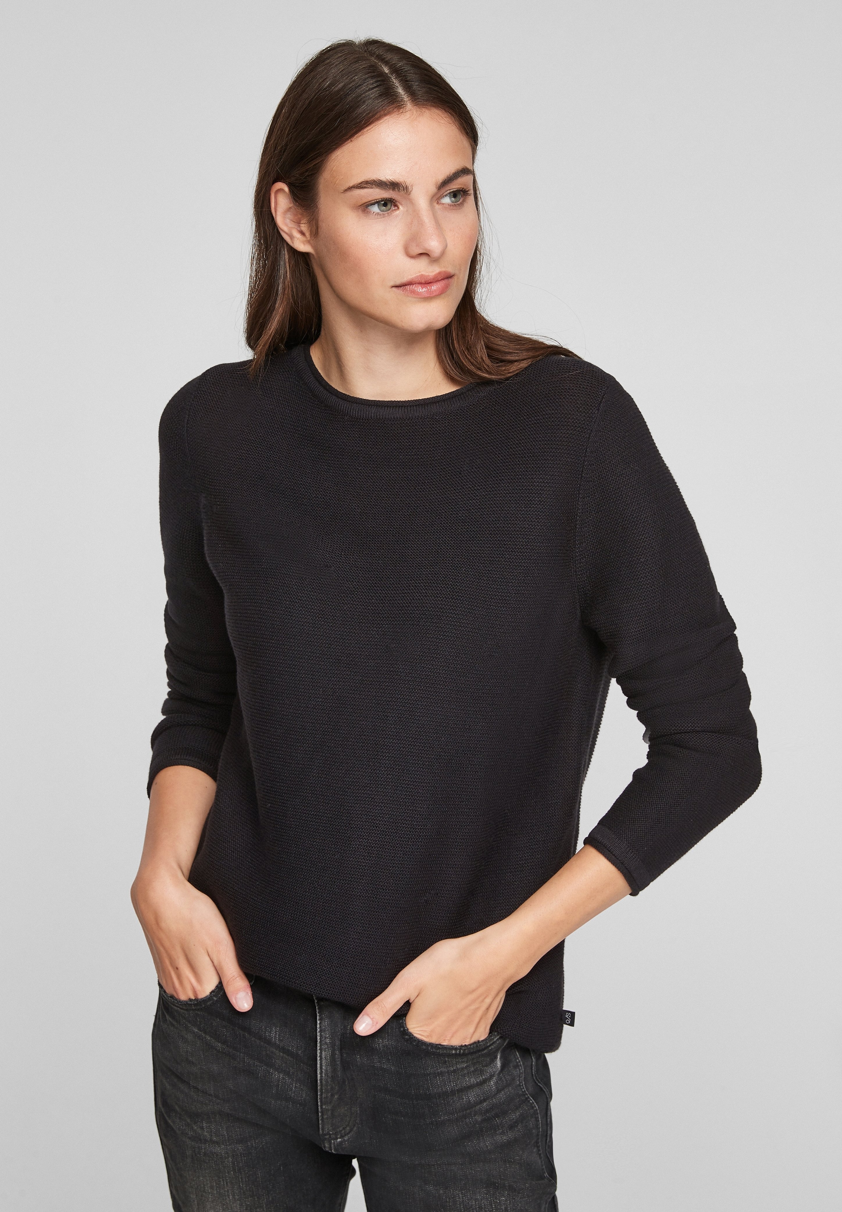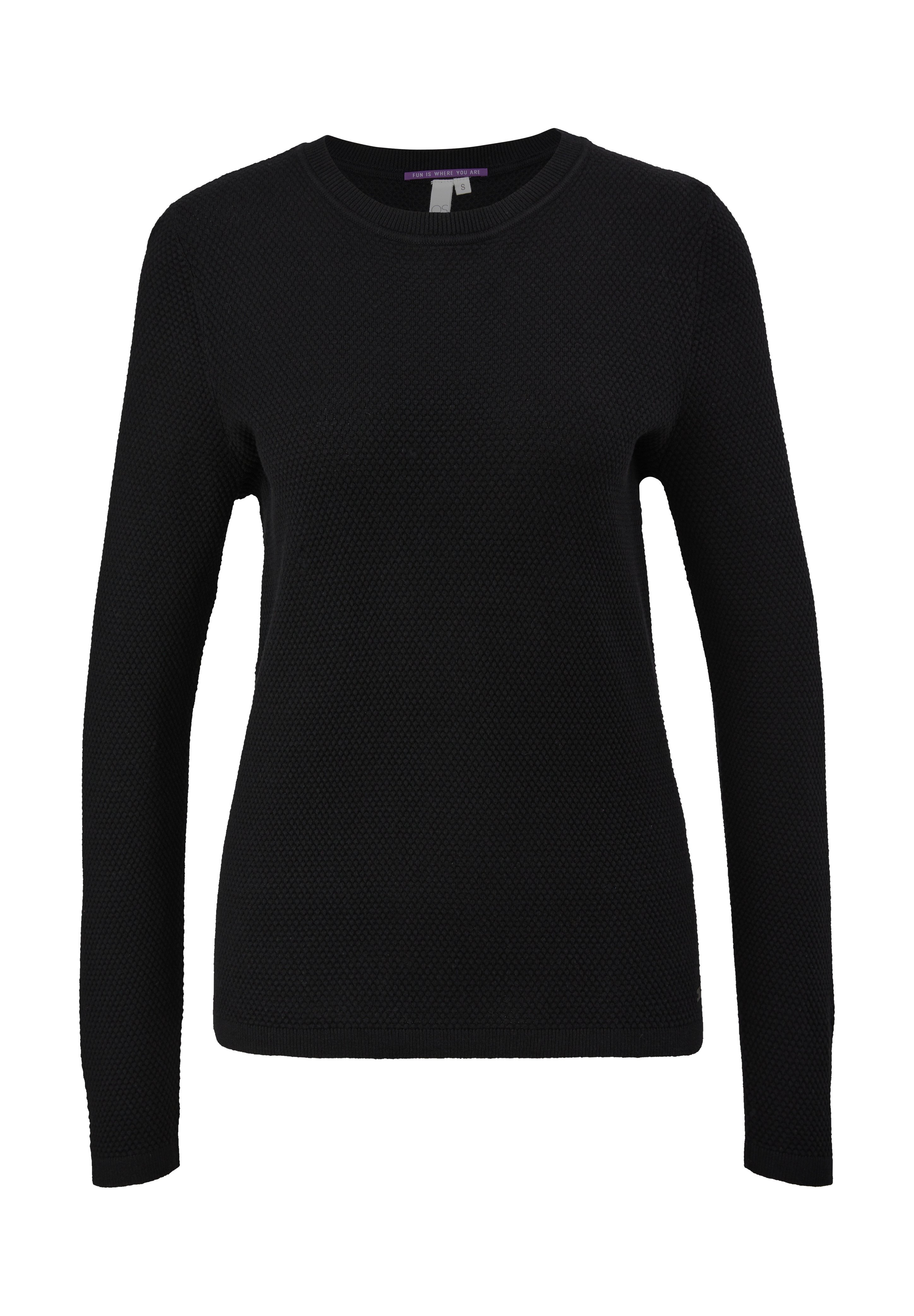 QS Damen Pullover Regular Fit - Klassischer Crewneck Mit Rippblenden