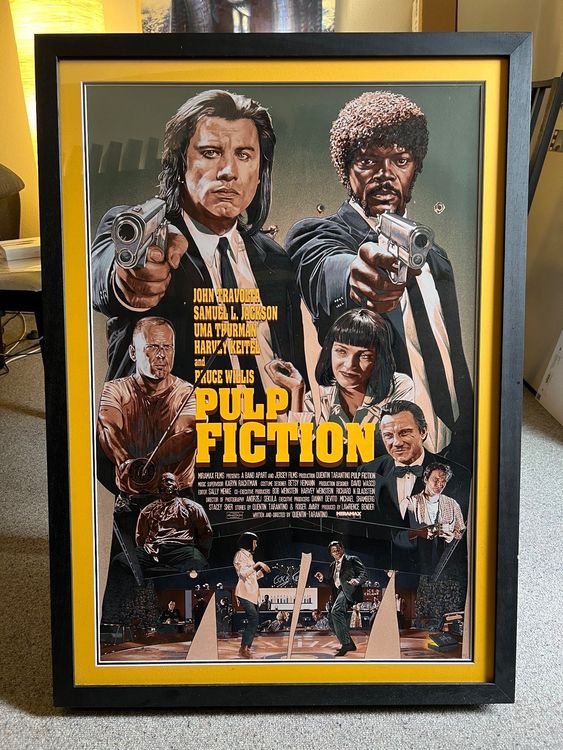 Filmfans und Tarantino-Liebhaber - dieses Pulp Fiction Poster ist ein Must-Have für jede Wohnung! Auf hochwertiger Leinwand gedruckt, 40x60cm groß. Die wasserfeste Tinte ist UV-beständig und hält die Farben über 30 Jahre frisch. Ungerahmt - du kannst es direkt aufhängen oder noch einen Rahmen dazu kaufen. Perfekt für Wohnzimmer, Schlafzimmer oder Büro. Das ikonische Design mit John Travolta und Samuel L. Jackson kennt ja jeder - ein echter Klassiker! Auch als Geschenk für Filmfans super. Die Leinwand ist viel langlebiger als Papierposter und sieht auch viel edler aus. Hol dir ein Stück Filmgeschichte an die Wand und zeig, dass du Style hast! Einfach aufhängen und jeden Tag an einen der coolsten Filme aller Zeiten erinnert werden.