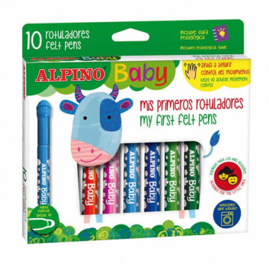 Malen ohne Stress - die Alpino Baby Punktmarker machen's möglich! Mit 6 knalligen Farben in praktischen 40 ml Flaschen. Die spezielle Schwammspitze sorgt für perfekte Punkte und hilft deinem Kind, die Bewegung besser zu kontrollieren. Super für Kleinkinder zwischen 1,5 und 4 Jahren. Die Tinte ist abwaschbar von Händen und Stoffen - kein Drama, wenn mal was daneben geht! Im Set sind 5 süße Tierkarten zum Ausmalen dabei. Einfach die Kappe ab, Spitze fest aufs Papier drücken und los geht der Malspaß! Vor dem ersten Gebrauch kräftig schütteln nicht vergessen. Entwickelt mit Pädagogen - fördert die Kreativität in der Krickel-Krackel-Phase. Perfekt für regnerische Nachmittage oder als Geschenk zum Geburtstag. Dein Kind wird begeistert sein! Und du musst dir keine Sorgen um Flecken machen. Einfach mal ausprobieren - die Kleinen lieben es, damit zu experimentieren und ihrer Fantasie freien Lauf zu lassen!