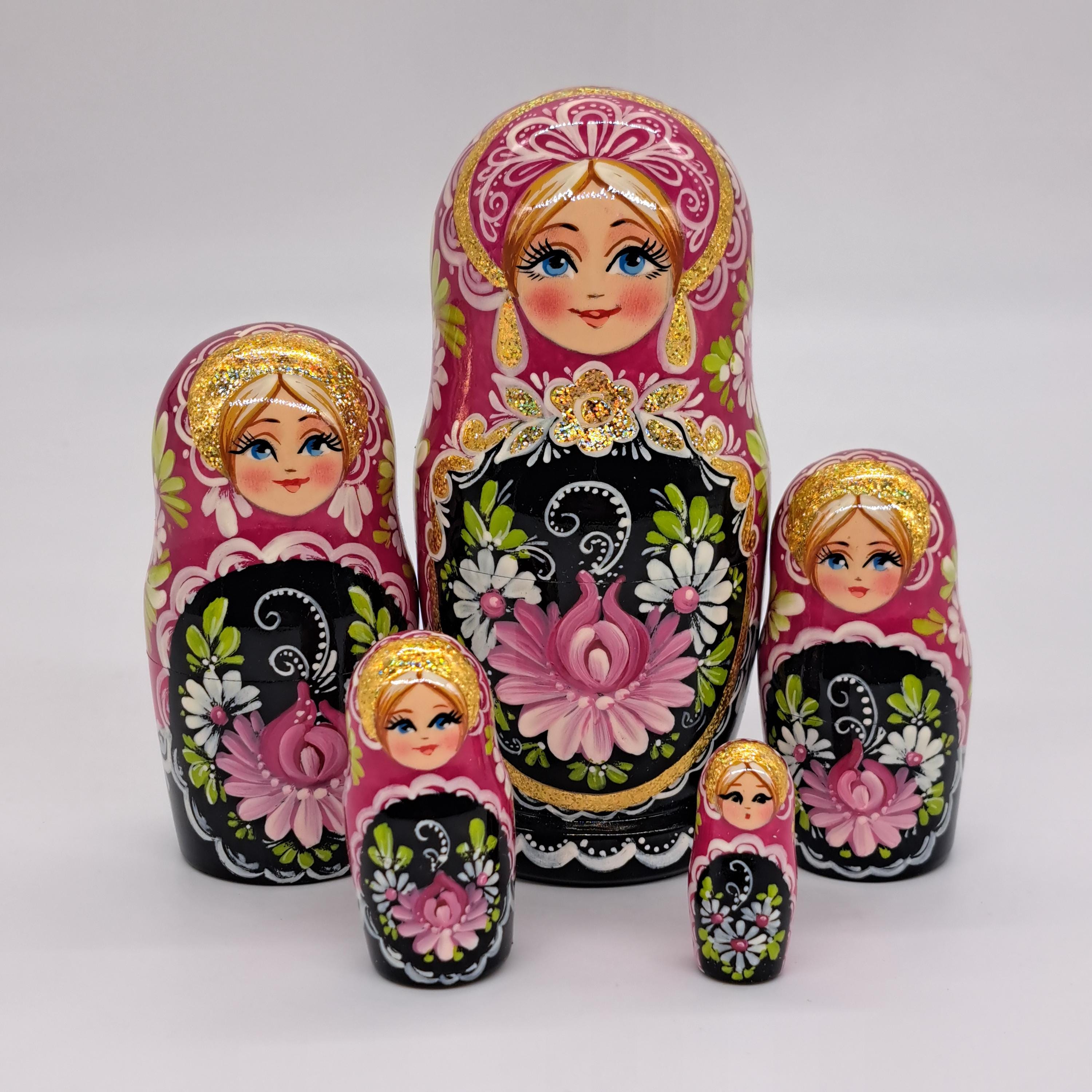 Die magischen russischen Matrjoschkas! Dieses 6-teilige Set aus handbemalten Holzpuppen begeistert Groß und Klein. Jede Puppe verbirgt eine kleinere in sich - ein riesiger Spielspaß! Aus hochwertigem, glatt poliertem Holz gefertigt - langlebig und haptisch ansprechend. Fördert die Hand-Auge-Koordination und das Verständnis für Größenverhältnisse. Perfekt für Reisen, als Deko oder für Familien-Spielzeit. Leicht und tragbar - ideal für unterwegs. Ein wunderbares Geschenk, das russische Kultur und traditionelles Handwerk näherbringt. Einfach auseinandernehmen und wieder zusammenbauen - stundenlanger Spielspaß garantiert!
