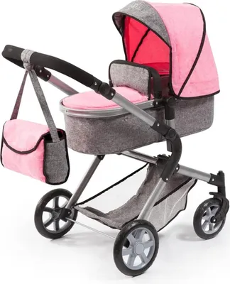 Bayer Design Puppenwagen Set - Faltbar Mit Hochstuhl & Tasche In Rosa/Grau
