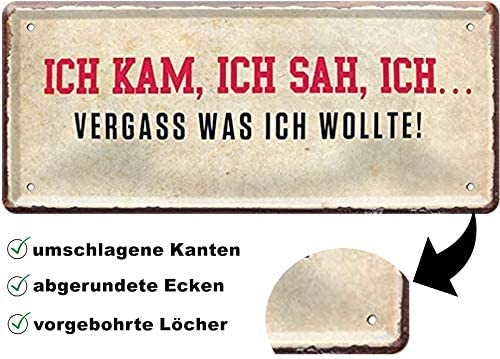 Dieses Metallschild mit dem Huhn und dem Spruch 'Ich kam, ich sah und vergaß, was ich vorhatte' ist einfach urkomisch! Aus robustem Aluminium gefertigt, hängt es Jahre lang ohne zu verblassen. Perfekt für die Küche, den Flur, das Homeoffice oder die Werkstatt - überall dort, wo man mal was vergisst (und wer tut das nicht?). Ein super Geschenk für Kollegen, Freunde oder sich selbst. Der Vintage-Look passt in fast jedes Interior, und der Spruch sorgt garantiert für Schmunzler. Einfach aufhängen und gute Laune verbreiten!