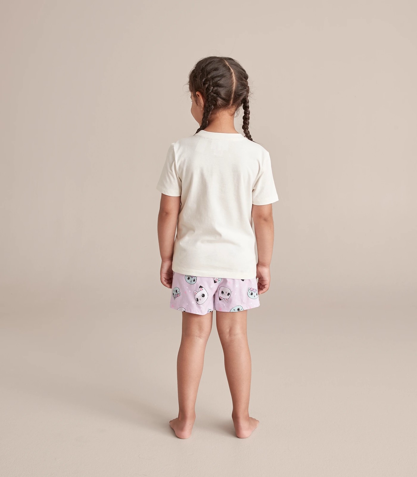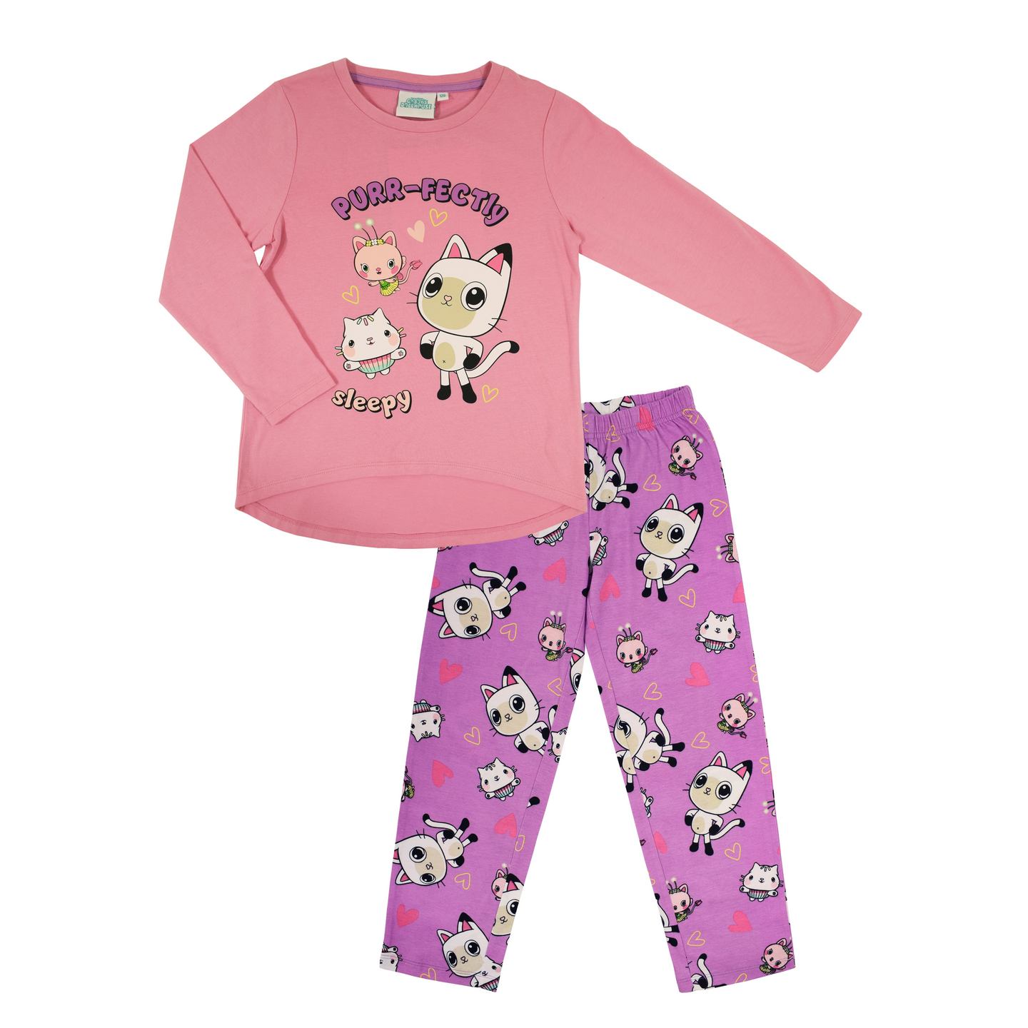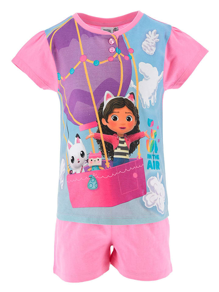 Für alle kleinen Gabby's Dollhouse-Fans - dieser Pyjama ist ein absoluter Traum! Zeigt Gabby mit all ihren Freunden vor dem magischen Puppenhaus. Die Hose hat alle Katzenfreunde drauf - Pandy Paws, Cakey Cat, Catrat und die anderen. Aus superweicher Baumwollmischung - mega bequem auf der Haut und maschinenwaschbar. Mit Bündchen an Ärmeln und Hosenbeinen sowie elastischem Bund für die perfekte Passform. In Größen von 3-4 Jahren bis 7-8 Jahren erhältlich. Perfekt für Geschwister oder Übernachtungen bei Freunden. Macht die Schlafenszeit zur Lieblingszeit! Deine Kleine wird sich riesig freuen und nicht mehr ausziehen wollen. Auch ein tolles Geschenk für jeden Gabby's Dollhouse-Liebhaber!