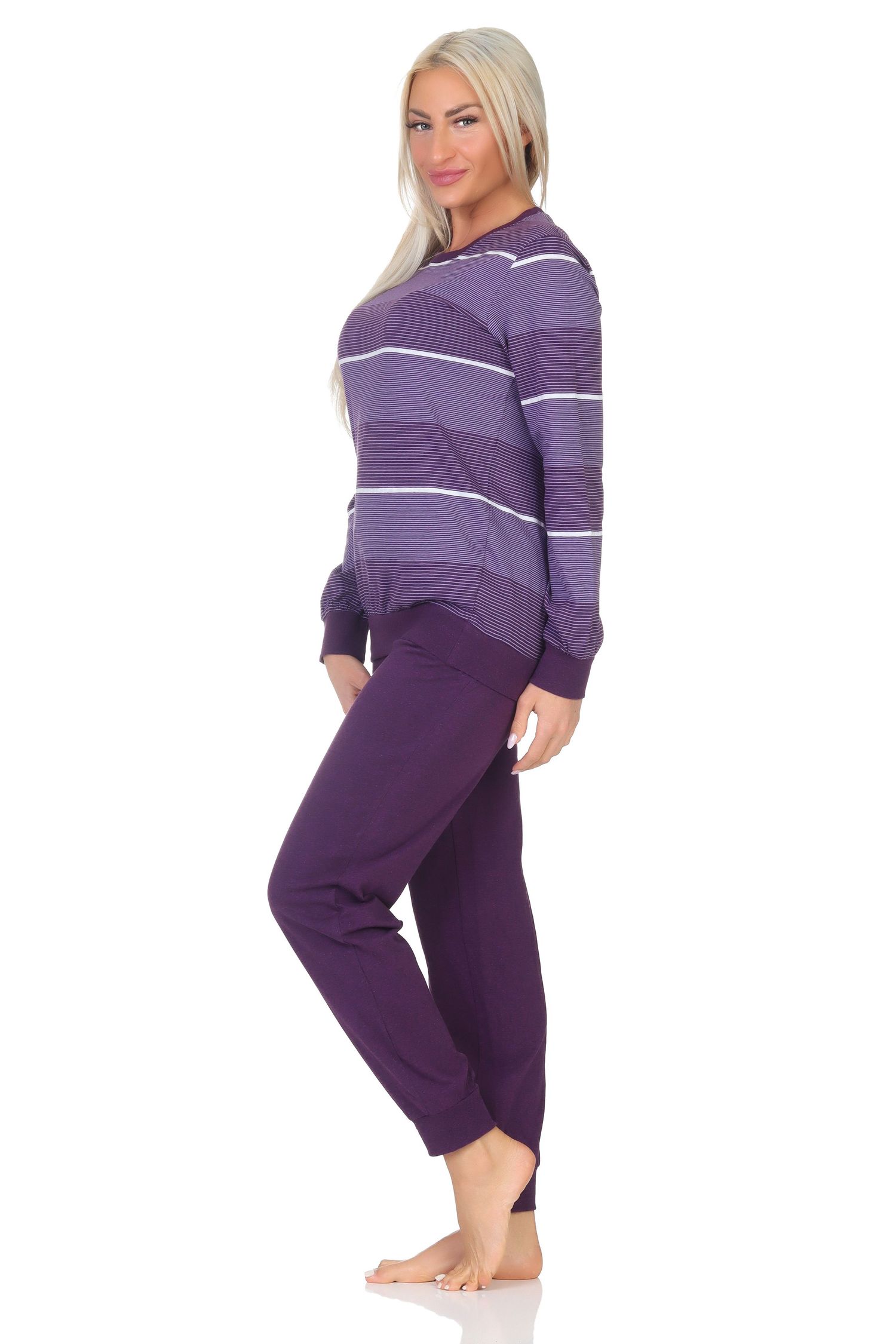 Normann Damen Frottee Pyjama Langarm - Kuscheliger Schlafanzug Mit Mond-Stern-Motiv