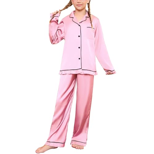 Fanient Mädchen Schlafanzug Satin Pyjama Set - Niedliche Drucke 2-teilig Für 7-14 Jahre