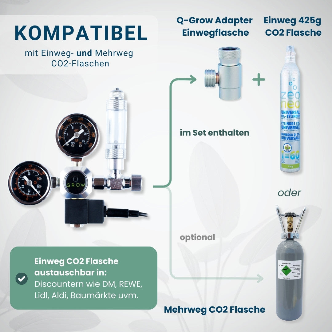 Gib deinen Aquarienpflanzen den CO2-Boost, den sie brauchen! Dieses Q-Grow Komplettset hat alles, was du für eine perfekte CO2-Versorgung benötigst.