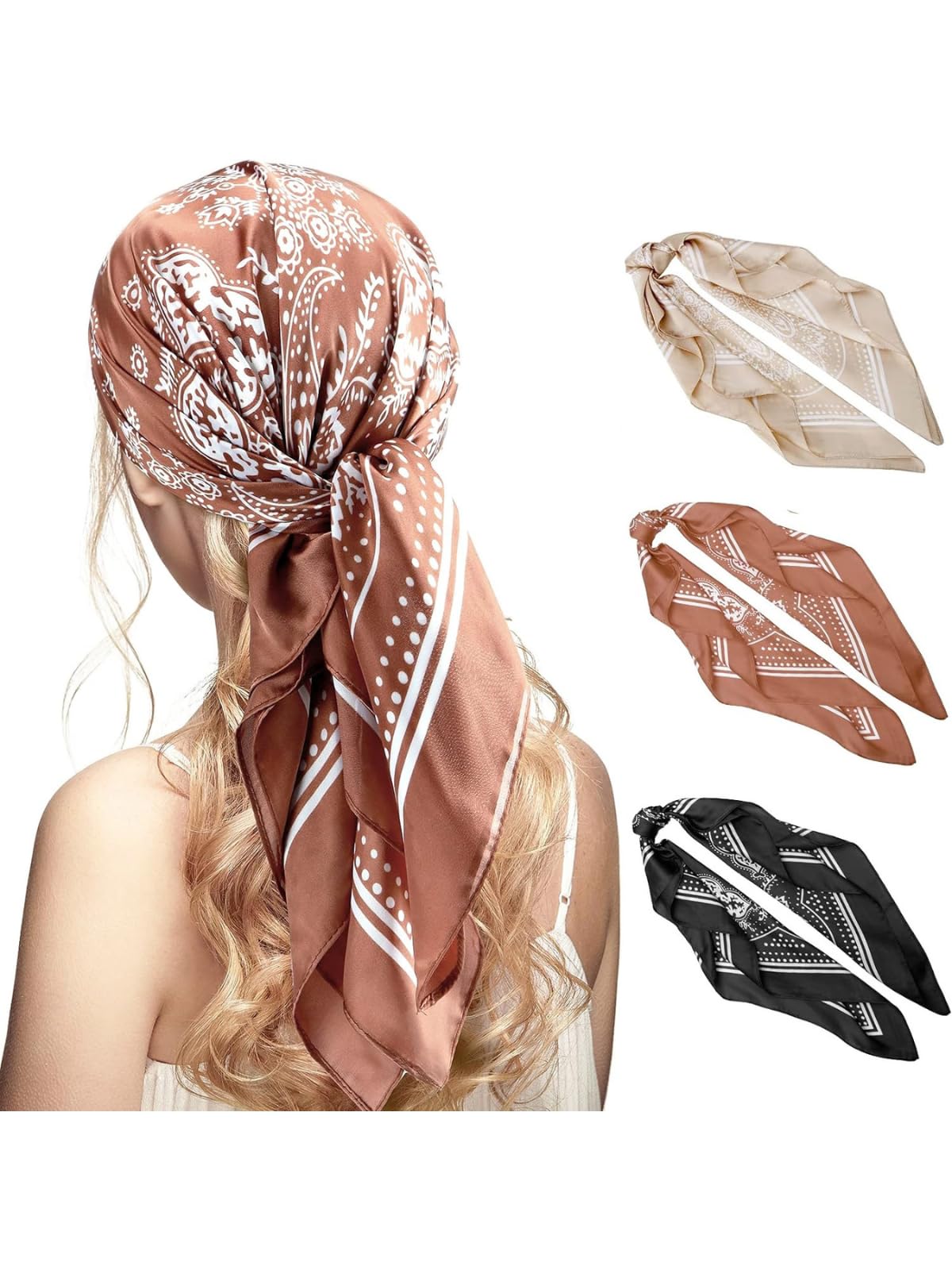 QBSM Seidentuch 90x90 Cm - Großes Satin Kopftuch Für Frauen Als Schal & Haarband